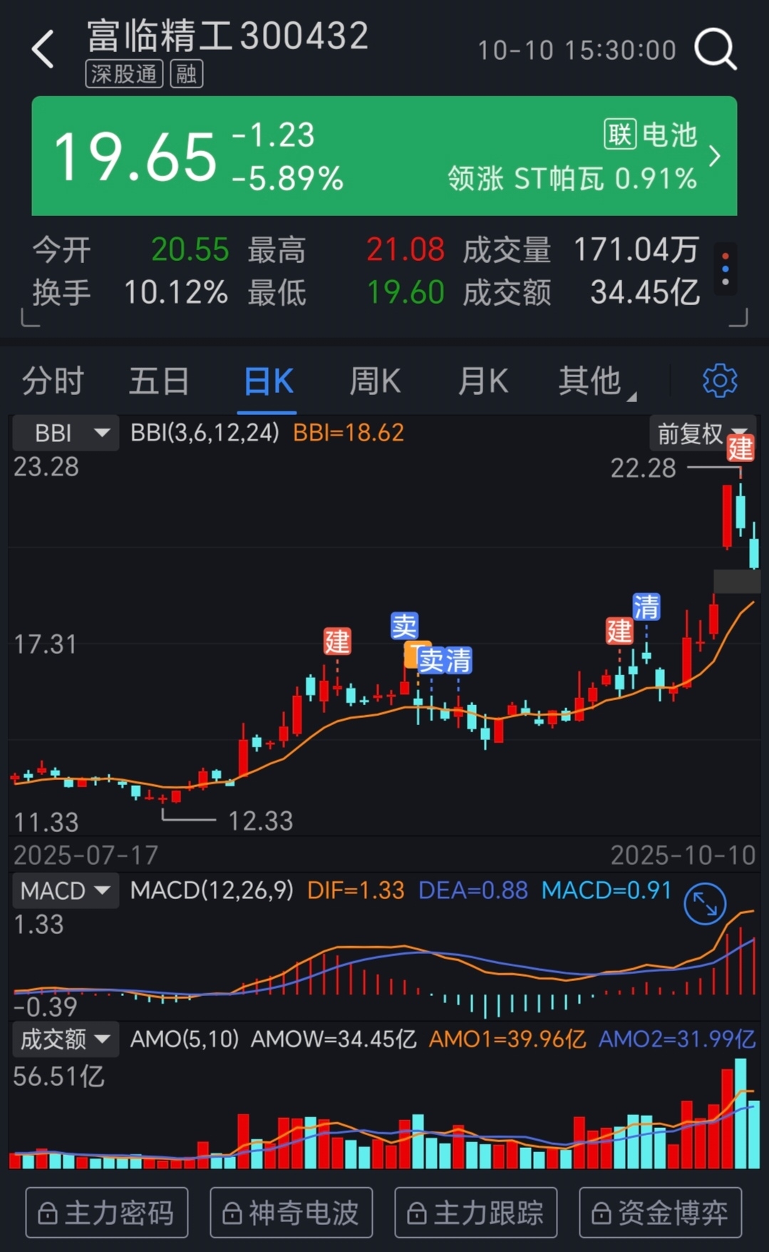 10月10日从21.08元“高空跳水”至19.65元,跌幅5.89%,别慌——这不是崩盘,是主力在玩“价格蹦极”,顺便测试散户心脏强度。34.45亿成交+10.12%换手,说明市场热度没熄火,只是情绪坐了趟过山车。市盈率96.32看着吓人?先别喊“贵”,新能源赛道本就是“成长股的游乐场”,高PE的背后是智能电控+锂电材料的双轮驱动想象力。335.97亿市值,在科技制造里也算“精工细作”的潜力股。回调?那是给没上车的朋友递梯子!别人怕高,我笑他不懂“高处才好摘星星”。富临不玩虚的,技术铺路,订单开道,这波调整,与其说是下跌,不如说是“腾出空间跳得更高”。记住:风大时,站得稳的精工,才飞得远!
