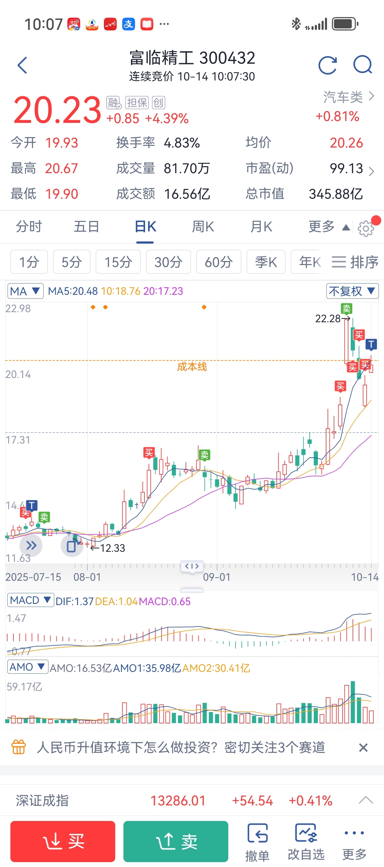 $富临精工(SZ300432)$ 跌就加仓,高了就T