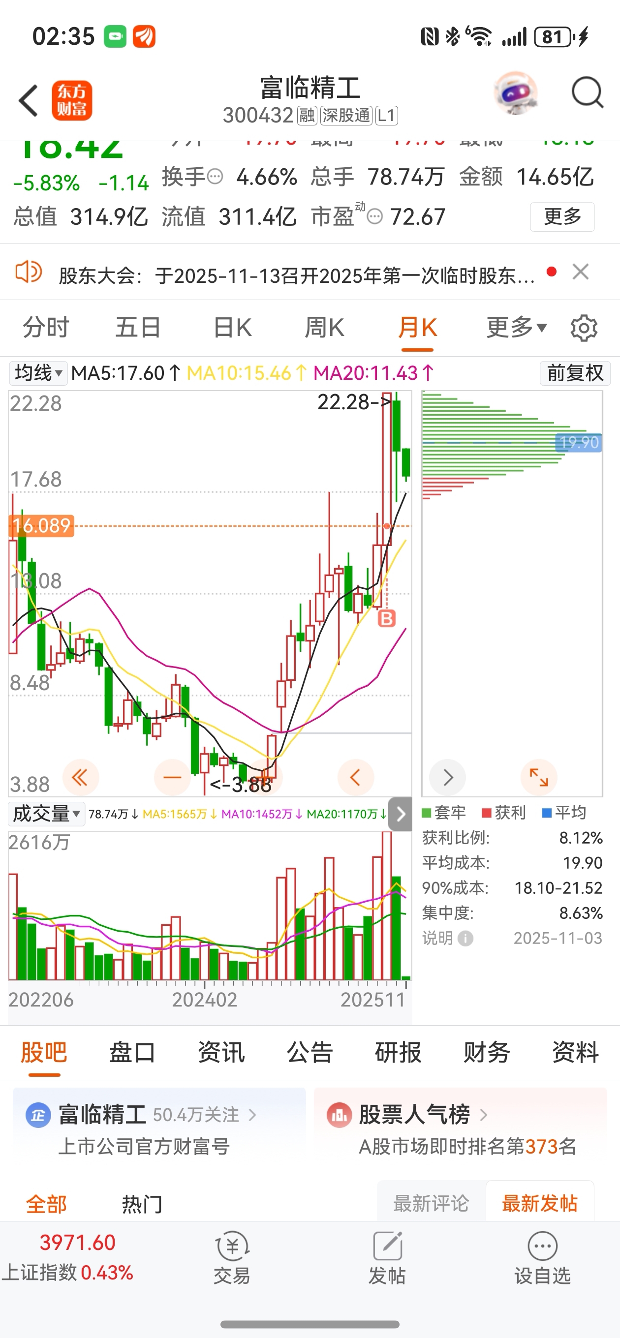 $富临精工(SZ300432)$ 从低位涨上来的!翻了几倍了,已经很强!只是现在已是强弩之末!