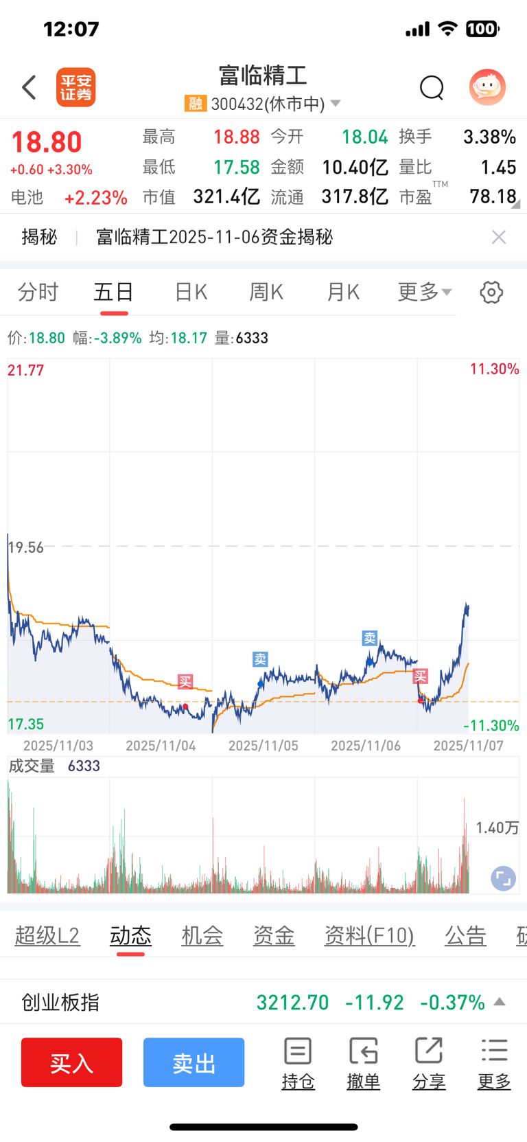 昨天收盘卖掉富临精工和深科技,几乎都是最高价,卖掉的,今天富临精工17点61买了昨天的5000股,深科技26点34买了5000股,赚不赚钱无所谓,主要是我认为马斯克一万亿薪酬计划取得成功给他支持一下,都是散户支持的才能成功,我作为散户必须支持机器人取得成功,也是我的认知的变现