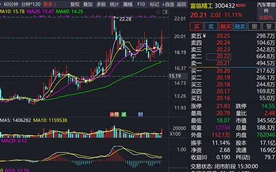 富临精工自9月30日新高后,开启了一个半月的震荡,最近一直在区间震荡,今日放量大