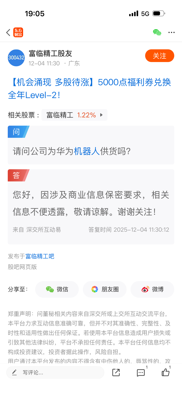 温馨提示: 1.根据《证券法》规定,禁止编造、传播虚假信息或者误导性信息,扰乱证券市场;2.用户在本社区发表的所有资料、言论等仅代表个人观点,与本网站立场无关,不对您构成任何投资建议。用户应基于自己的独立判断,自行决定证券投资并承担相应风险。《东方财富社区管理规定》