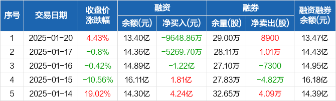 蓝思科技:融资净偿还9648.86万元,两市排名第17(01-20)