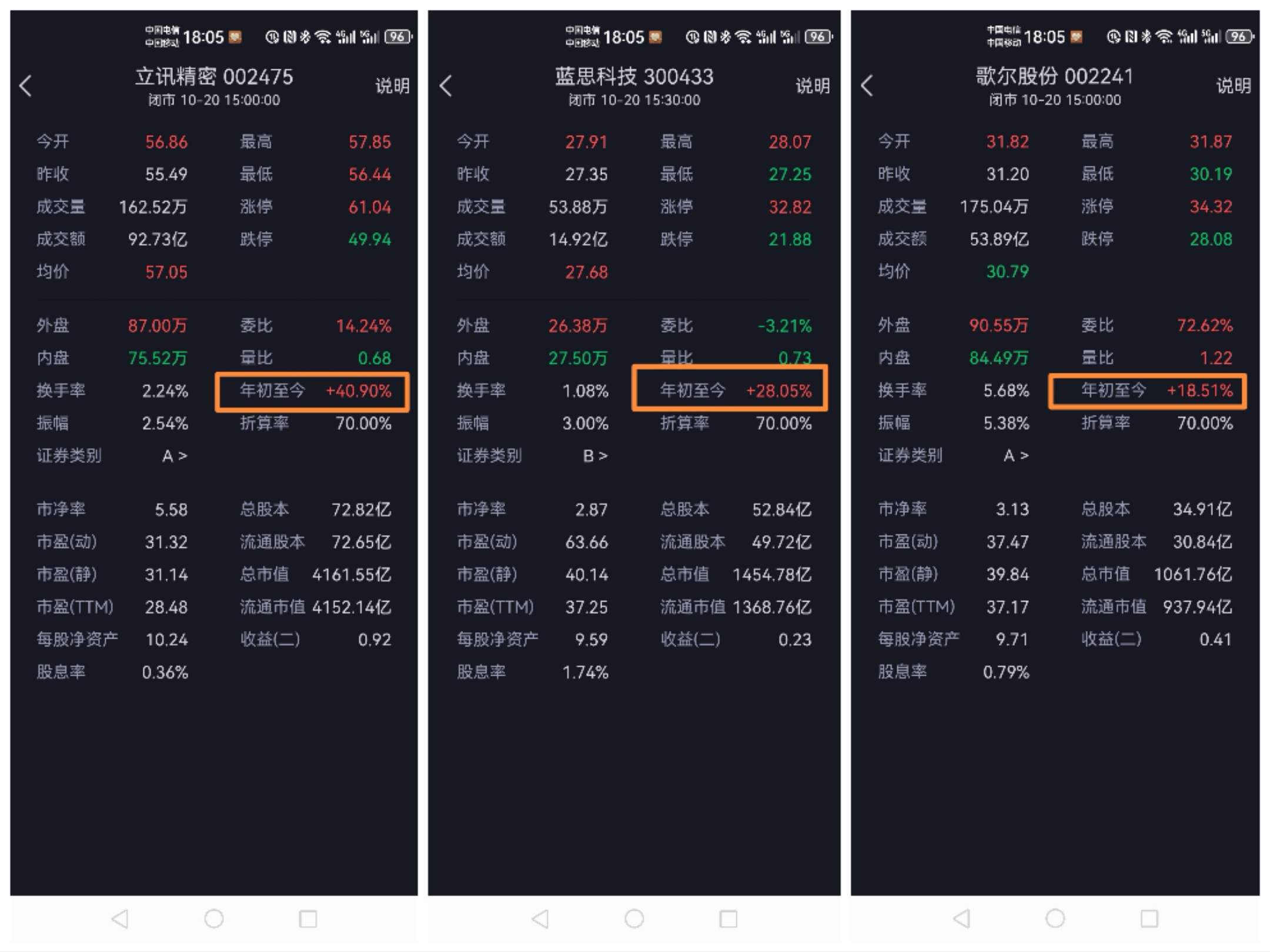 其他的我不懂看,但从今年的涨幅来看蓝思在三傻中排第二位,也没比立讯少涨多少,只是