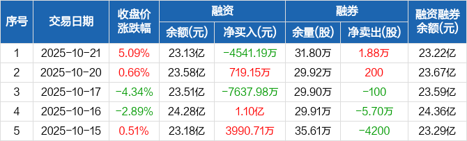 蓝思科技:融资净偿还4541.19万元,融资余额23.13亿元(10-21)