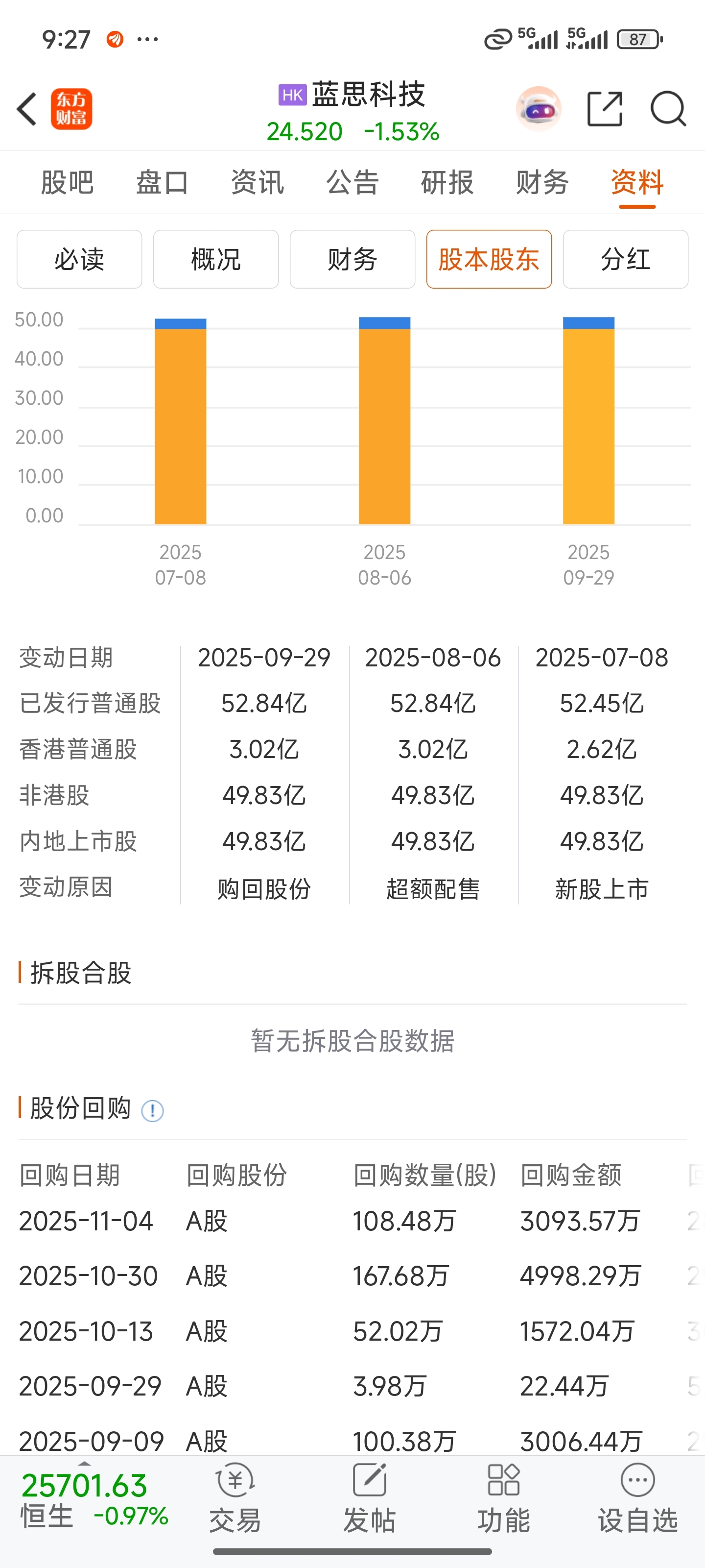 公司再次开启买买买模式,11月4日再次回购1百w股。