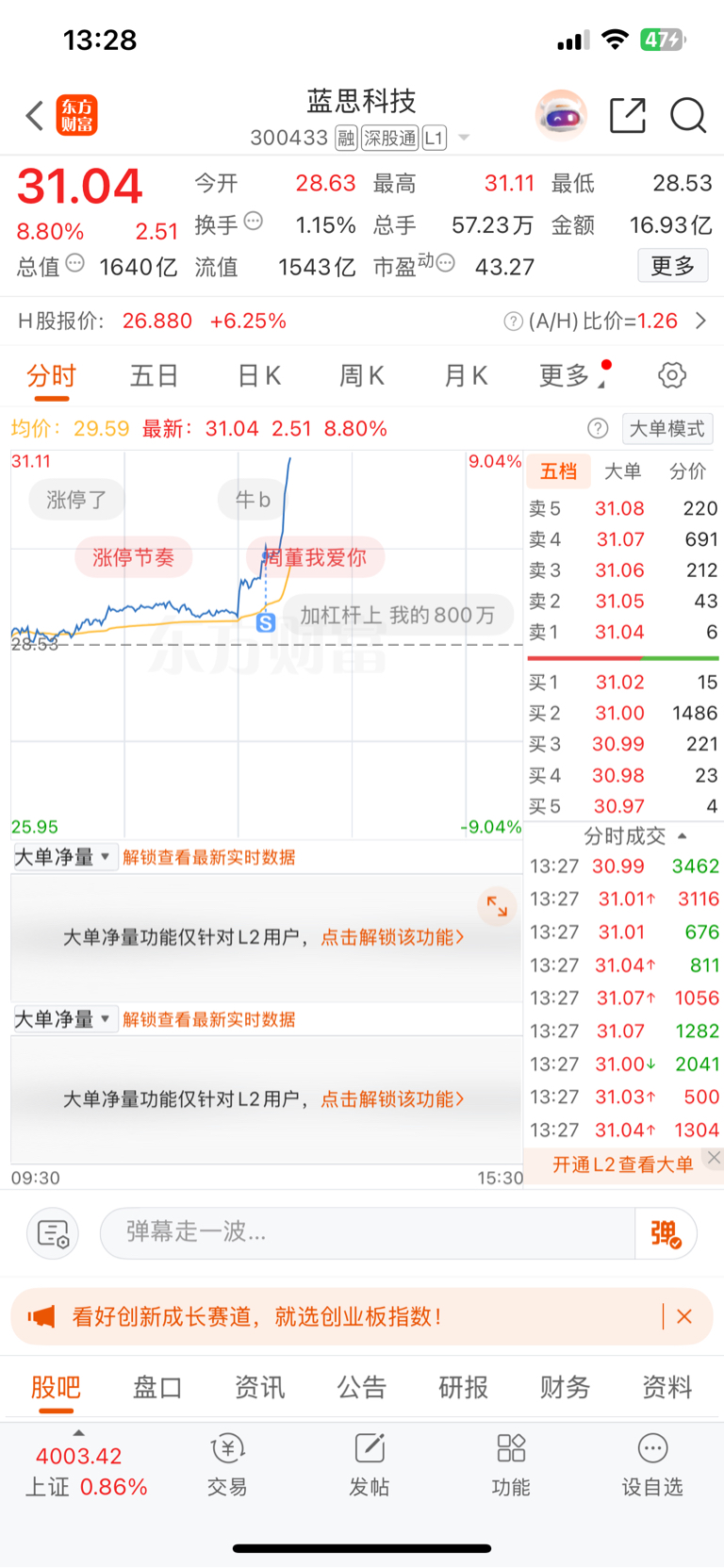 $蓝思科技(SZ300433)$ 卧槽,我一割就拉起来?