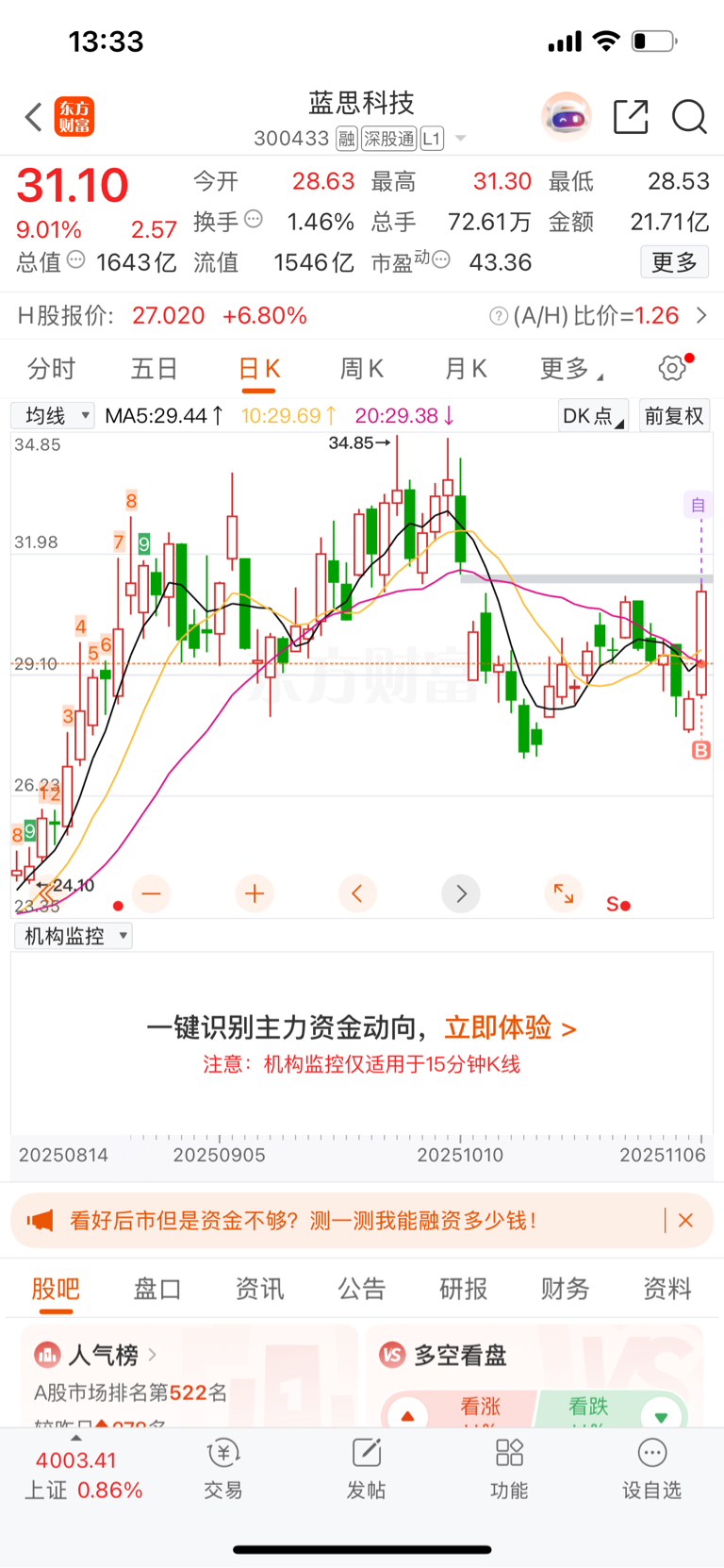 $蓝思科技(SZ300433)$ 下午一点钟买入的