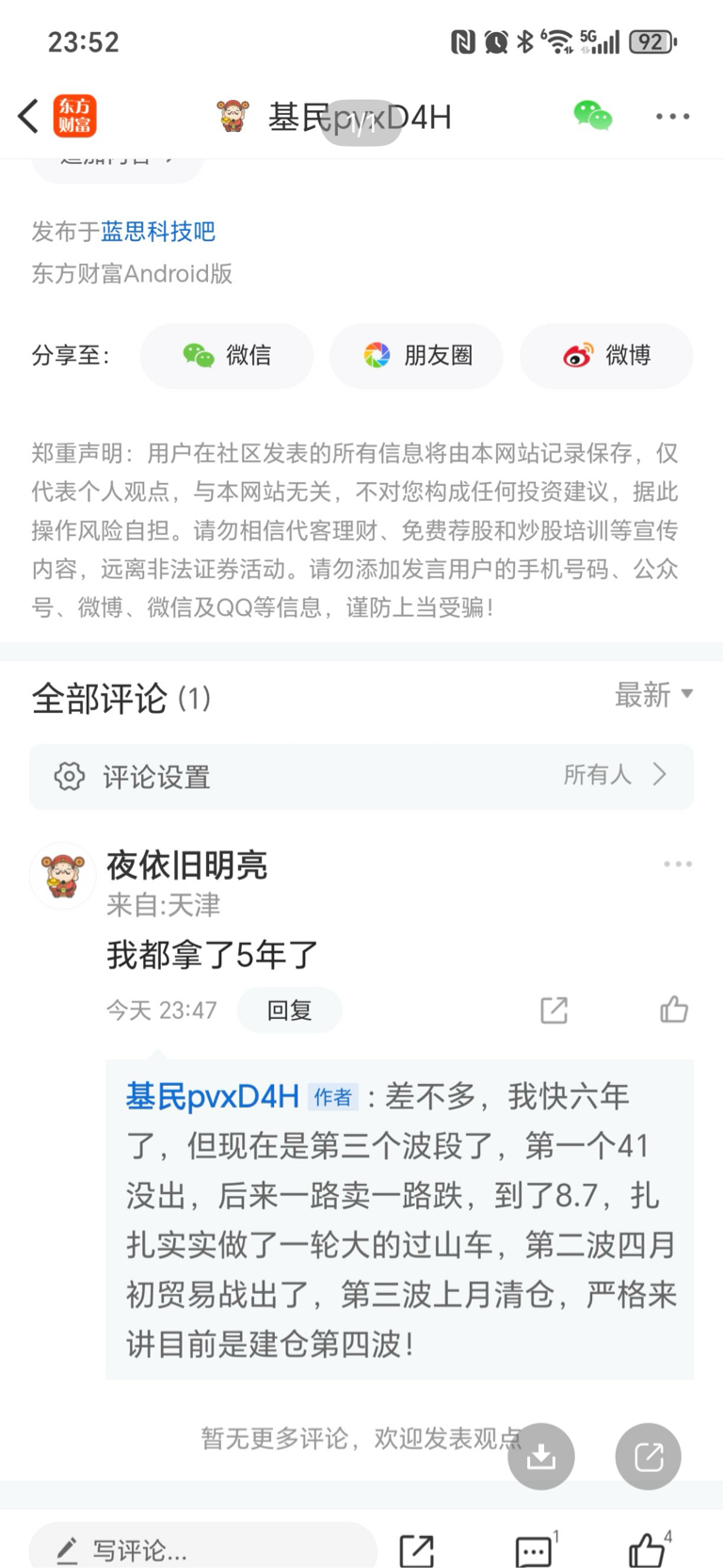 温馨提示: 1.根据《证券法》规定,禁止编造、传播虚假信息或者误导性信息,扰乱证券市场;2.用户在本社区发表的所有资料、言论等仅代表个人观点,与本网站立场无关,不对您构成任何投资建议。用户应基于自己的独立判断,自行决定证券投资并承担相应风险。《东方财富社区管理规定》