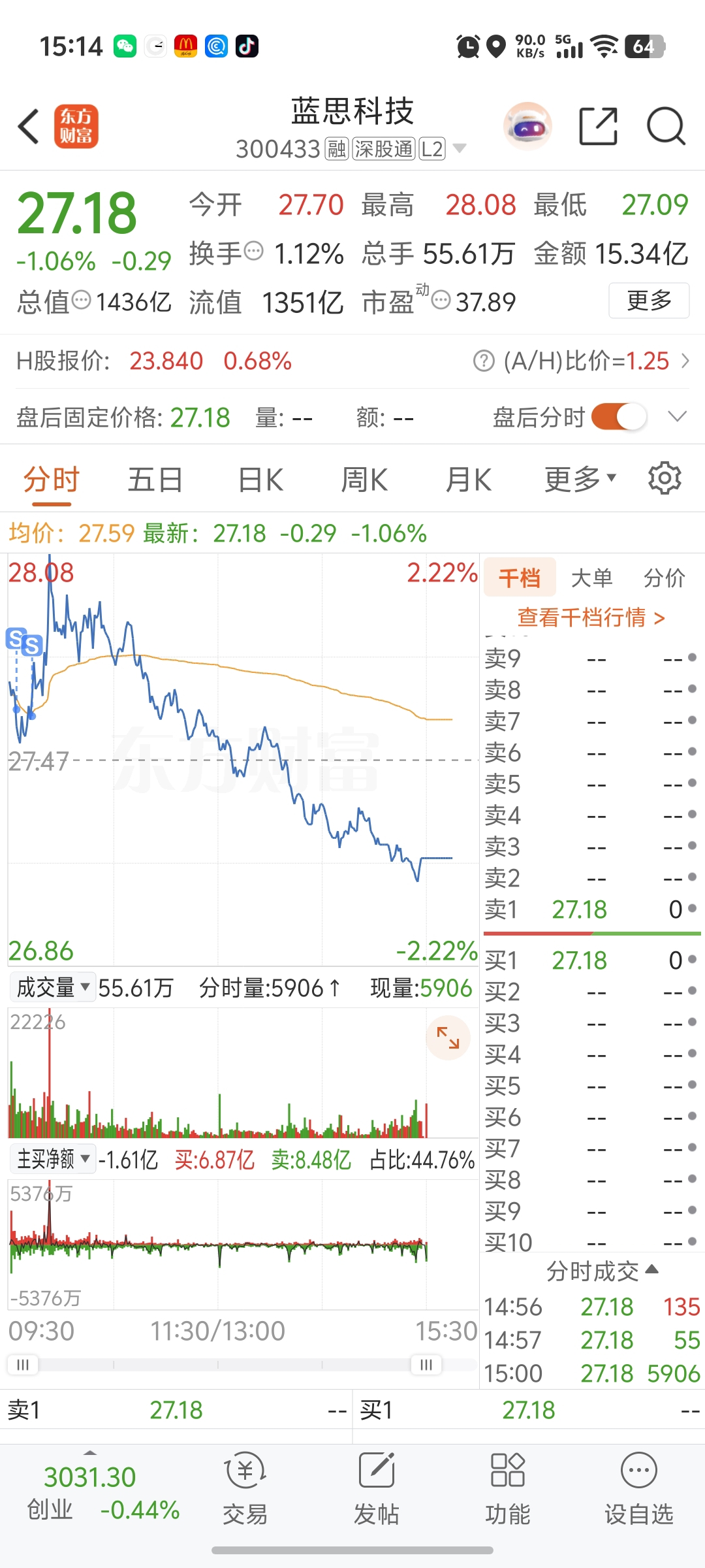 $蓝思科技(SZ300433)$ 没意思 开盘就割