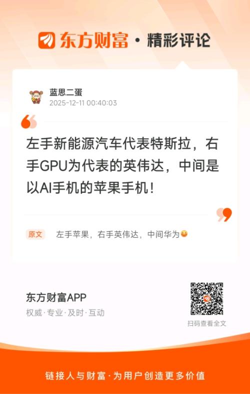 牛逼//@蓝思二蛋 :左手新能源汽车代表特斯拉,右手GPU为代表的英伟达,中间是以AI手机的苹果手机!