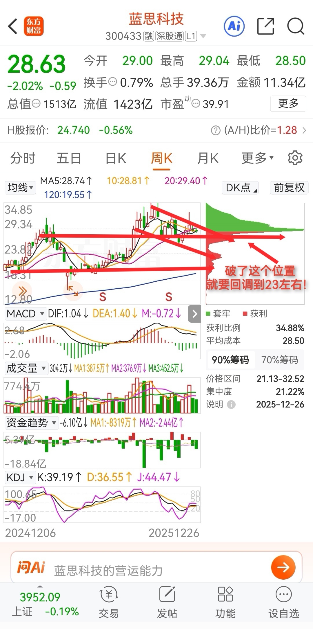 看来32天花板到23地板是回调区间的卖点与买点。