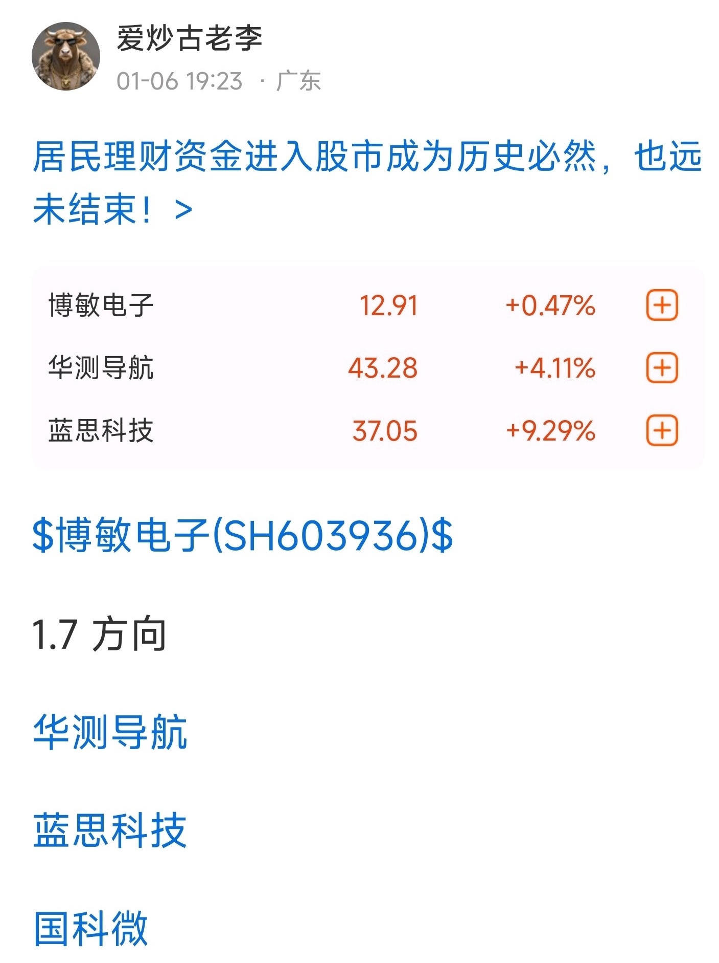 郑重声明:用户在财富号/股吧/博客等社区发表的所有信息(包括但不限于文字、视频、音频、数据及图表)仅代表个人观点,与本网站立场无关,不对您构成任何投资建议,据此操作风险自担。请勿相信代客理财、免费荐股和炒股培训等宣传内容,远离非法证券活动。请勿添加发言用户的手机号码、公众号、微博、微信及QQ等信息,谨防上当受骗!