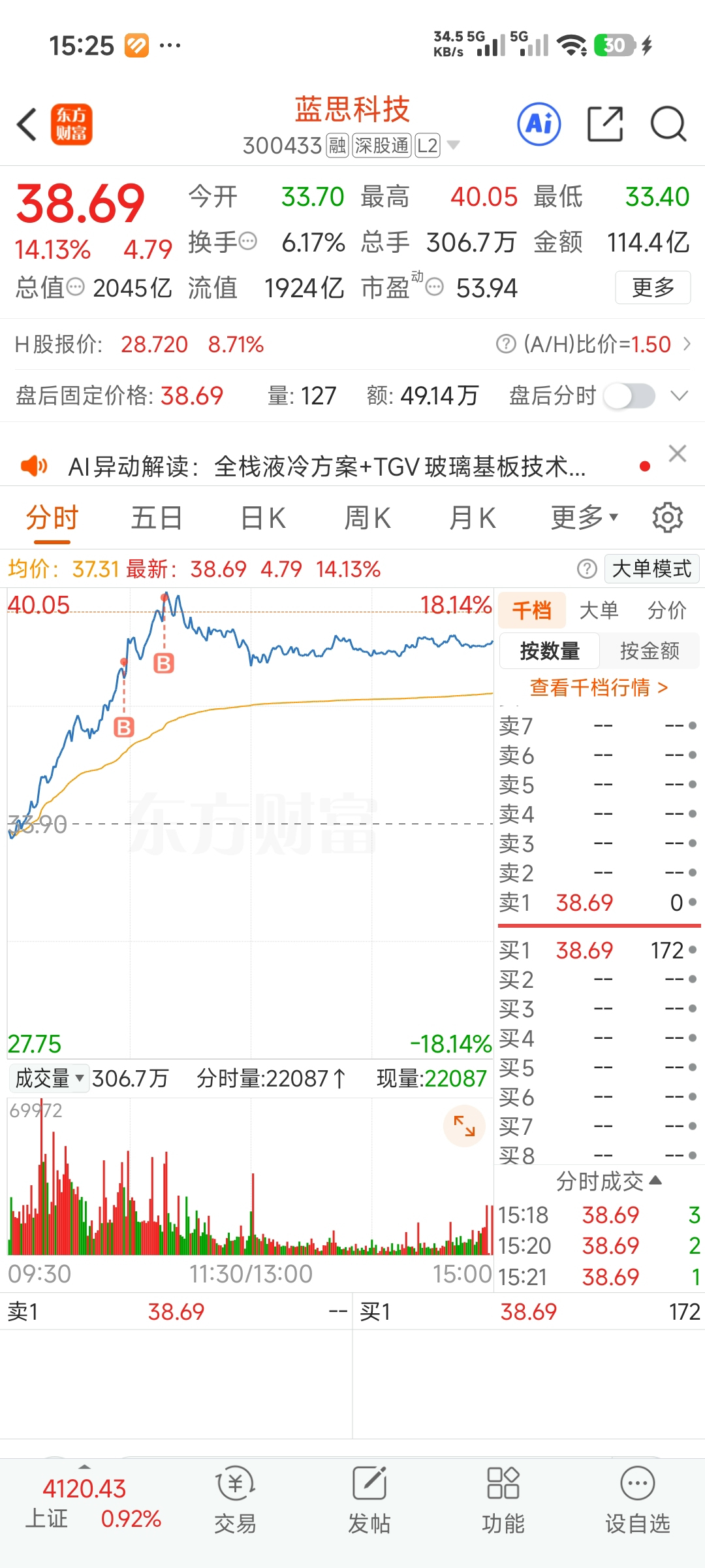$蓝思科技(SZ300433)$ $蓝思科技(SZ300433)$ 请问哥哥姐姐们,前两天满仓打妖股,炸板了一次亏了20多个点,今天心里有些急躁,上午看到这只股票主力流入好几个亿,股价蹭蹭往上涨,结果下午回落了,现在又亏了我两个多点,礼拜一还能红盘出来吗?请问今天为什么大涨,怎么莫名其妙的大涨啊。