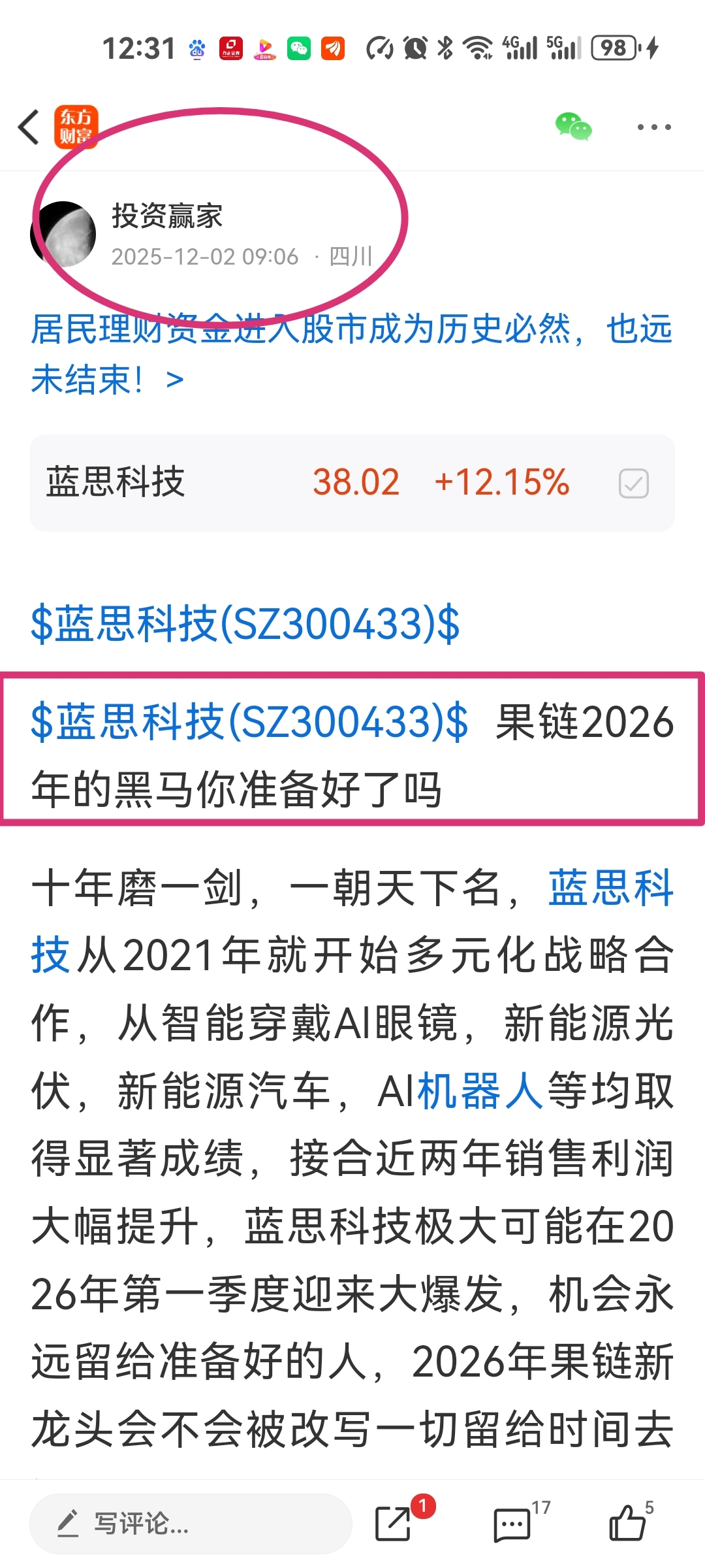郑重声明:用户在财富号/股吧/博客等社区发表的所有信息(包括但不限于文字、视频、音频、数据及图表)仅代表个人观点,与本网站立场无关,不对您构成任何投资建议,据此操作风险自担。请勿相信代客理财、免费荐股和炒股培训等宣传内容,远离非法证券活动。请勿添加发言用户的手机号码、公众号、微博、微信及QQ等信息,谨防上当受骗!