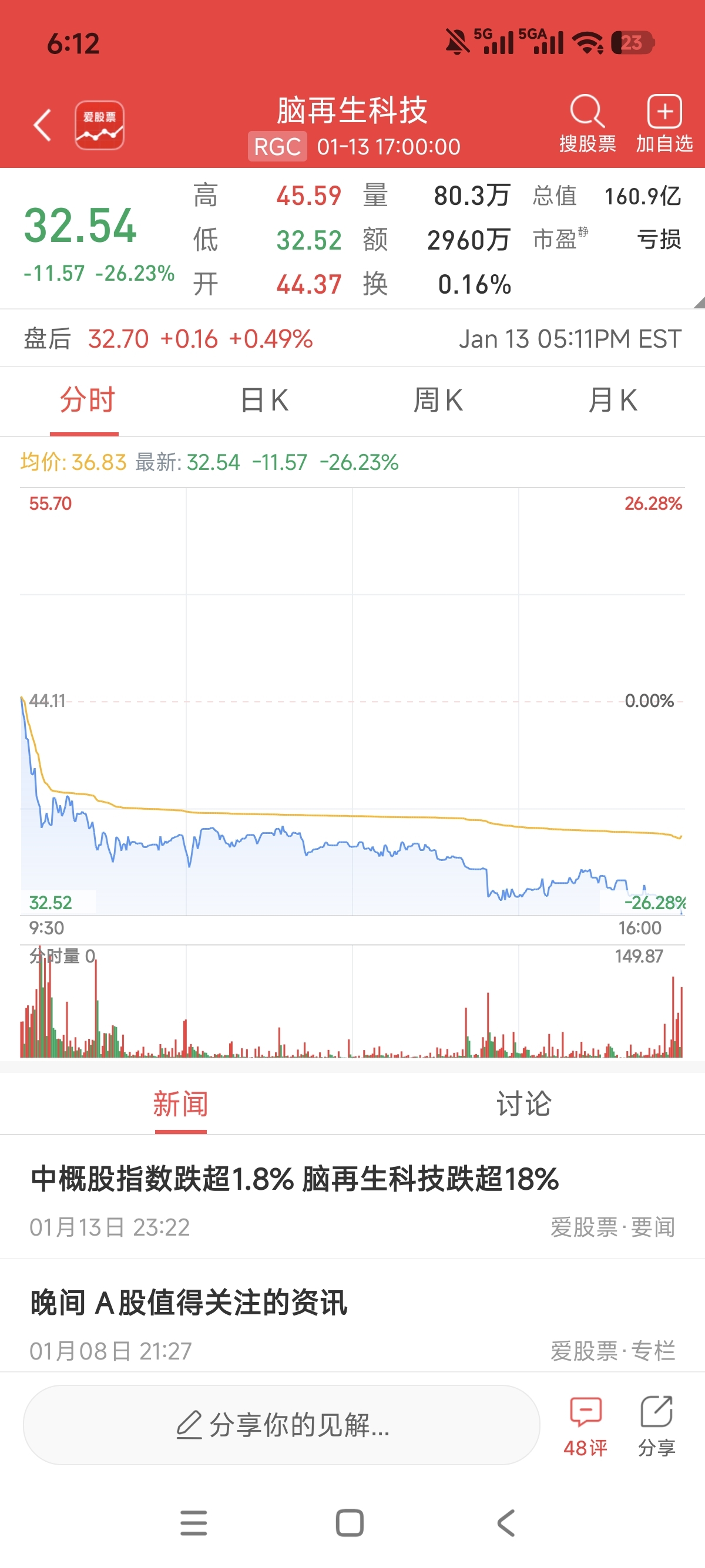 $蓝思科技(SZ300433)$ 脑机接口,今天又是暴跌踩踏,43.44历史大顶了!!!