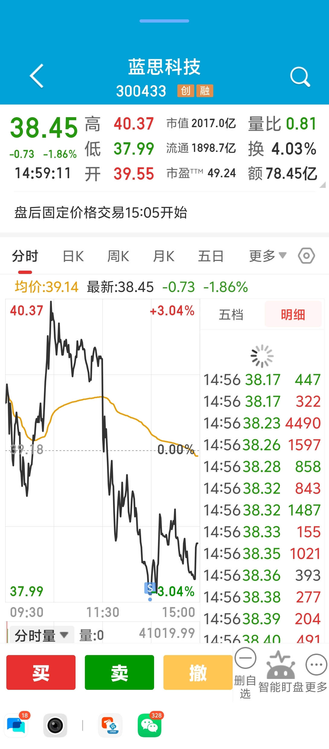 $蓝思科技(SZ300433)$ 又完美的卖在最低点,一般也都是买在最高点,真是服了,今天清仓五只票四只卖在基本最低点