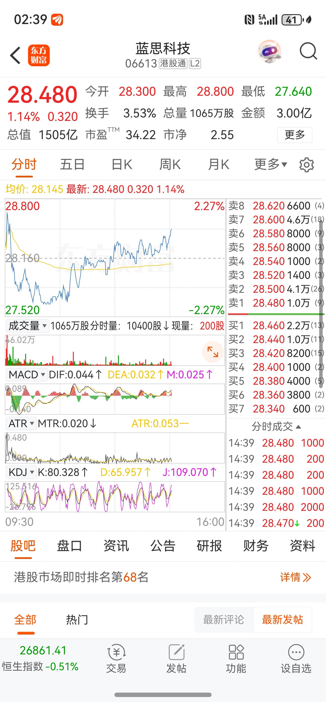 港股蓝思科技1个点了,你还趴着干嘛?起来干活了。