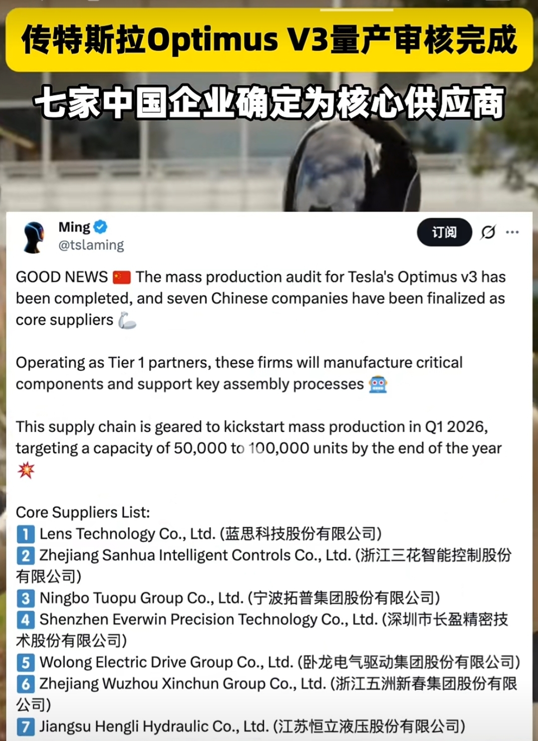 $蓝思科技(SZ300433)$ 特联拉审厂结束,蓝思科技是主要供应商