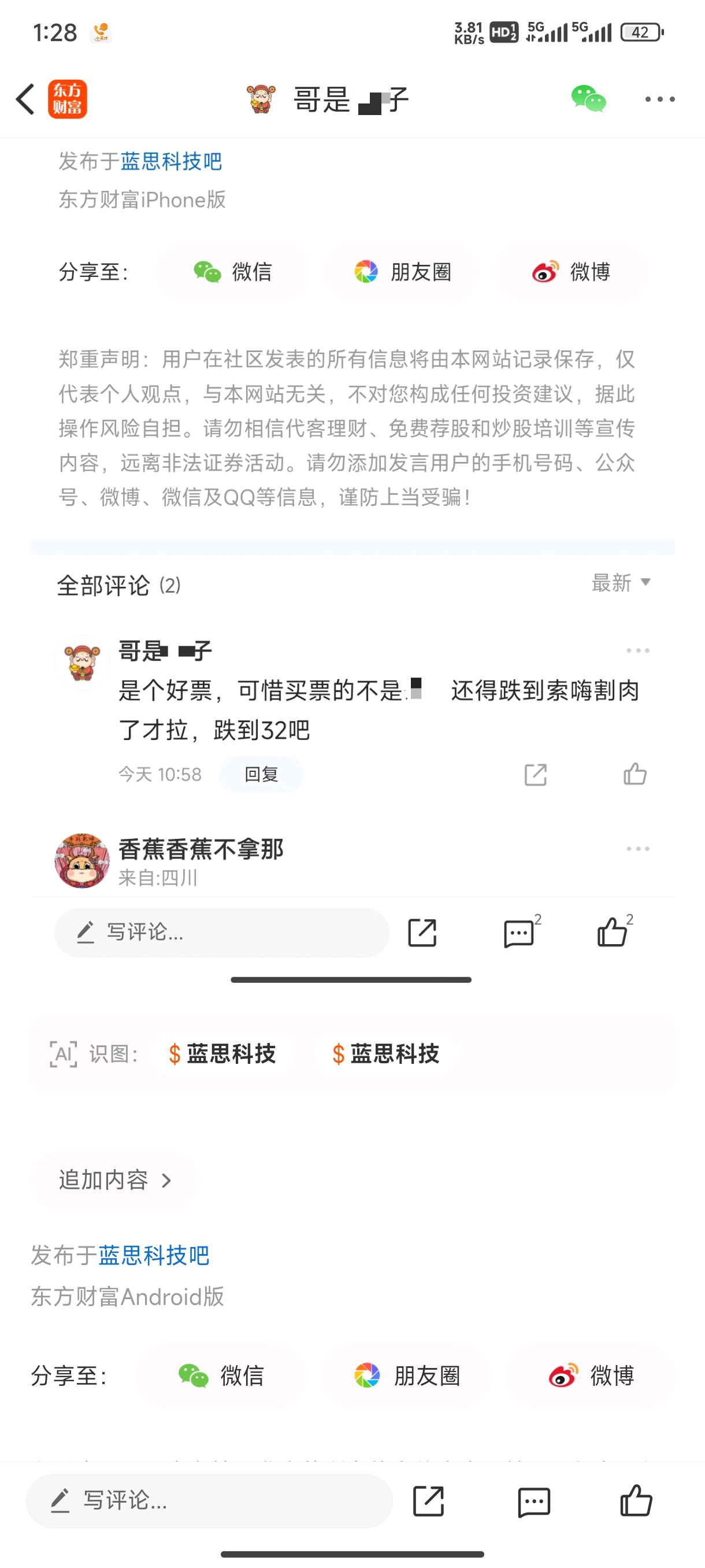 温馨提示: 1.根据《证券法》规定,禁止编造、传播虚假信息或者误导性信息,扰乱证券市场;2.用户在本社区发表的所有资料、言论等仅代表个人观点,与本网站立场无关,不对您构成任何投资建议。用户应基于自己的独立判断,自行决定证券投资并承担相应风险。《东方财富社区管理规定》