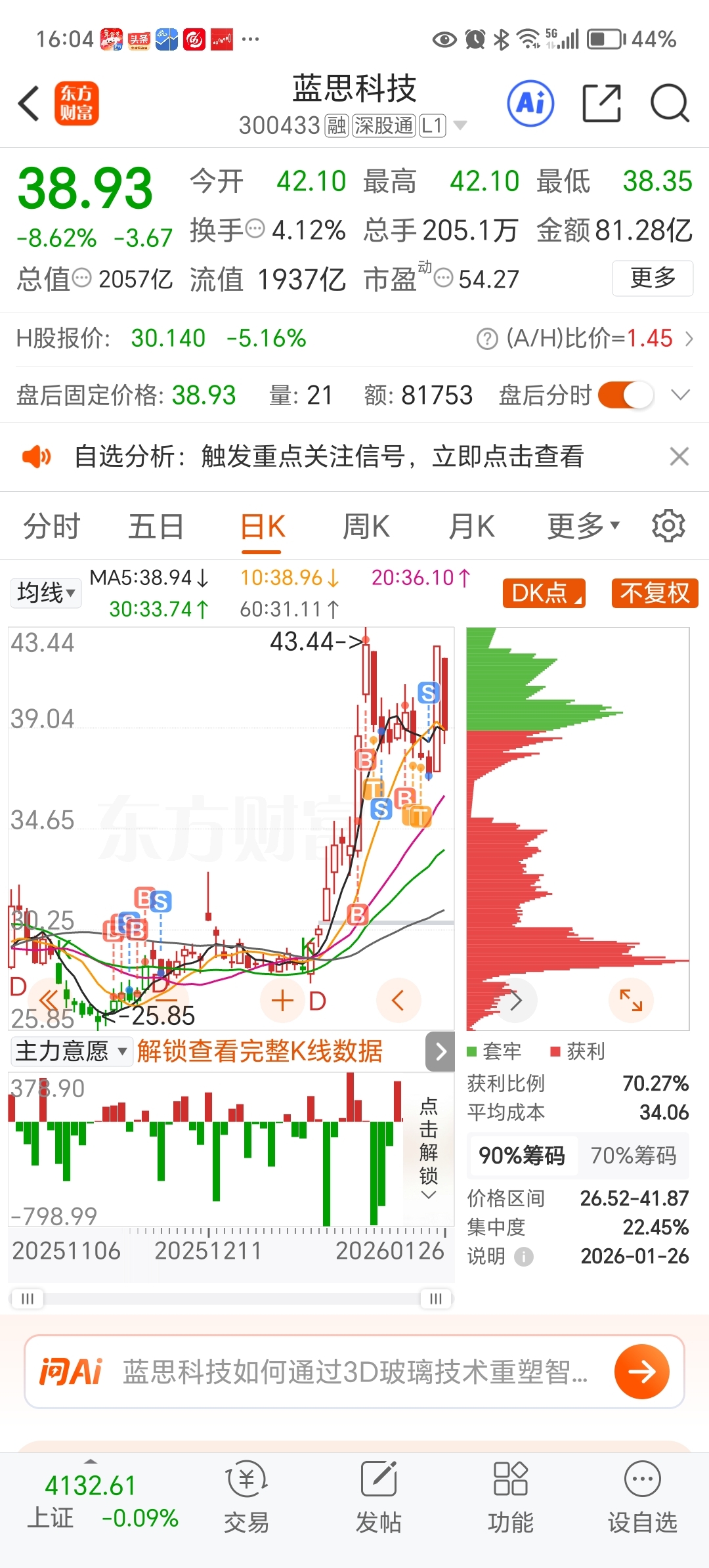 $蓝思科技(SZ300433)$ 躲过了上涨,没躲过下跌