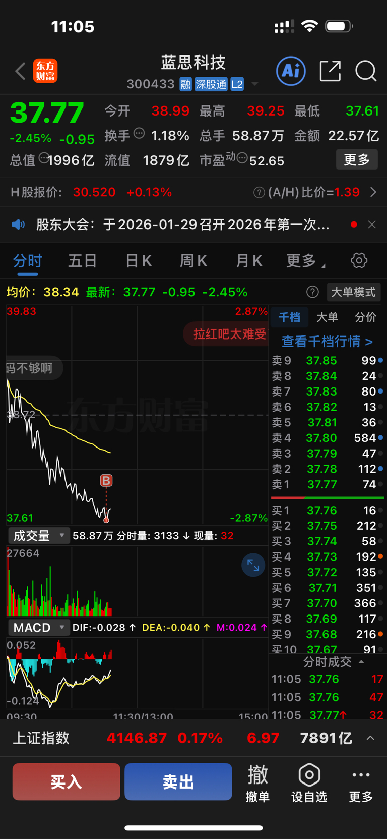 $蓝思科技(SZ300433)$ 可不能再下来了哈