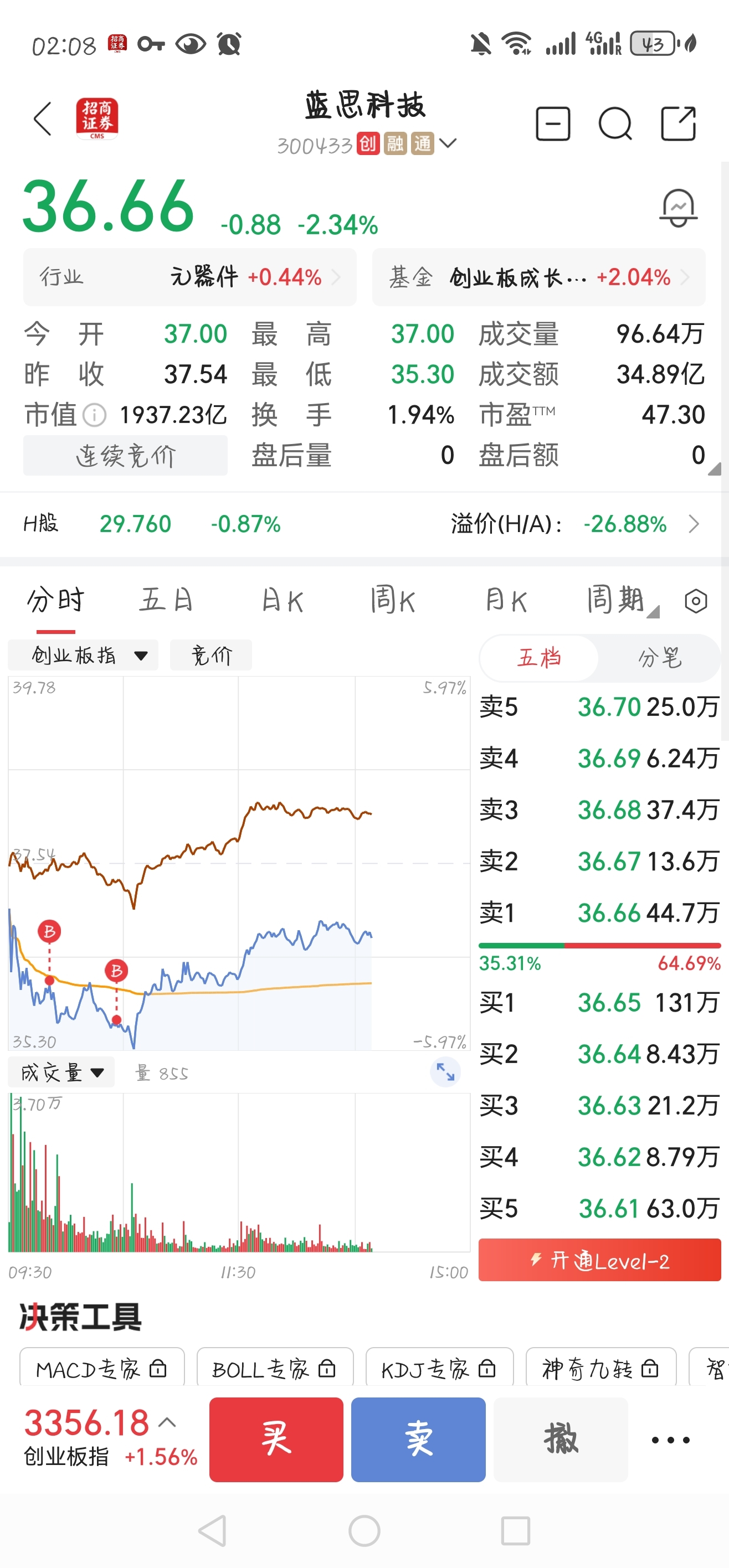 个股大跌5天,越是情绪冰点,越是得买跌的厉害的,35.5,36.0继续进货,成本