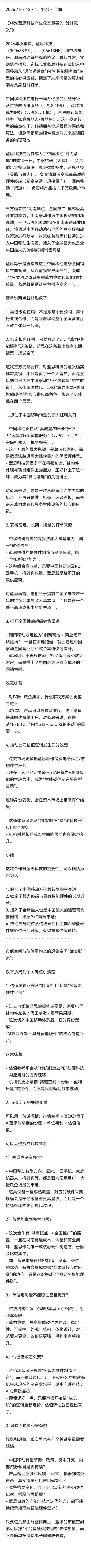 $蓝思科技(SZ300433)$ 2026/2/12•1:18分•上海•••《2026年小年夜,蓝思科技(300433.SZ )、(06613HK)和中移杭研、湖南移动签的战略协议,将对蓝思科技产生极其重要的“战略意义”》