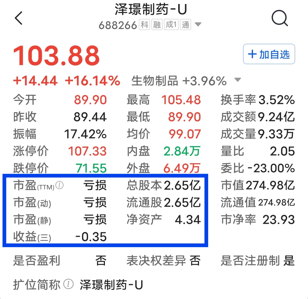 股本一样大的亏损股都涨到47~100多元金石亚药业绩好股本小又有什么用呢