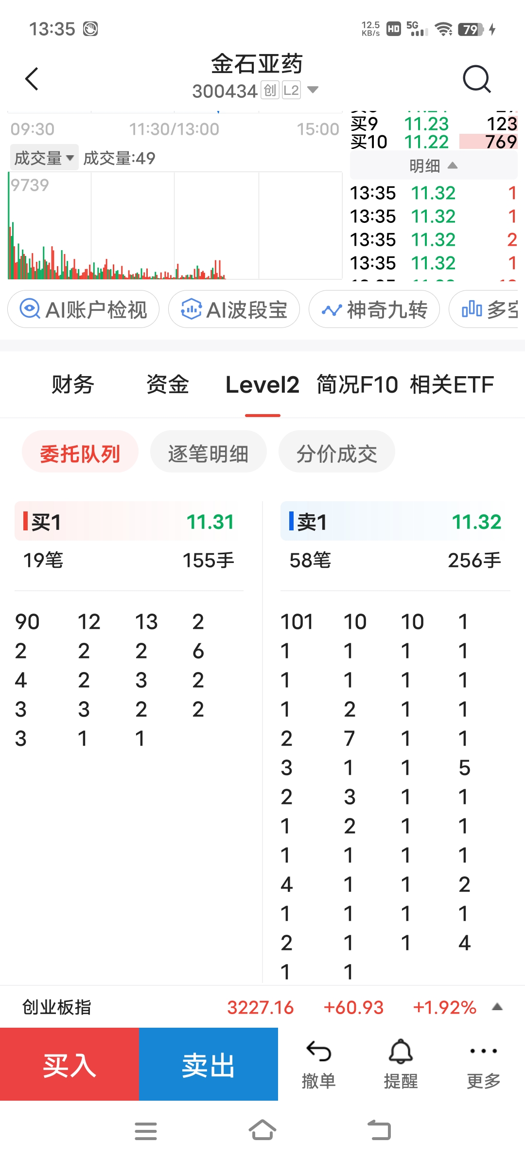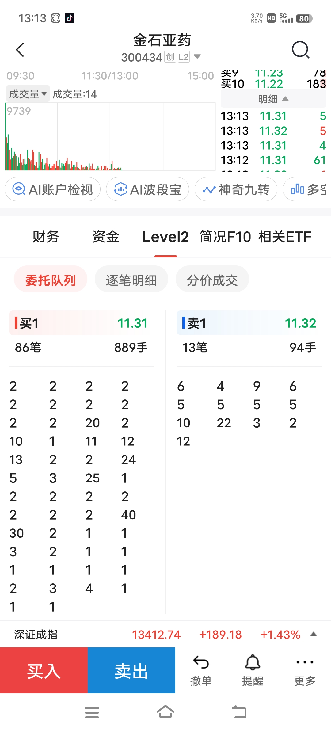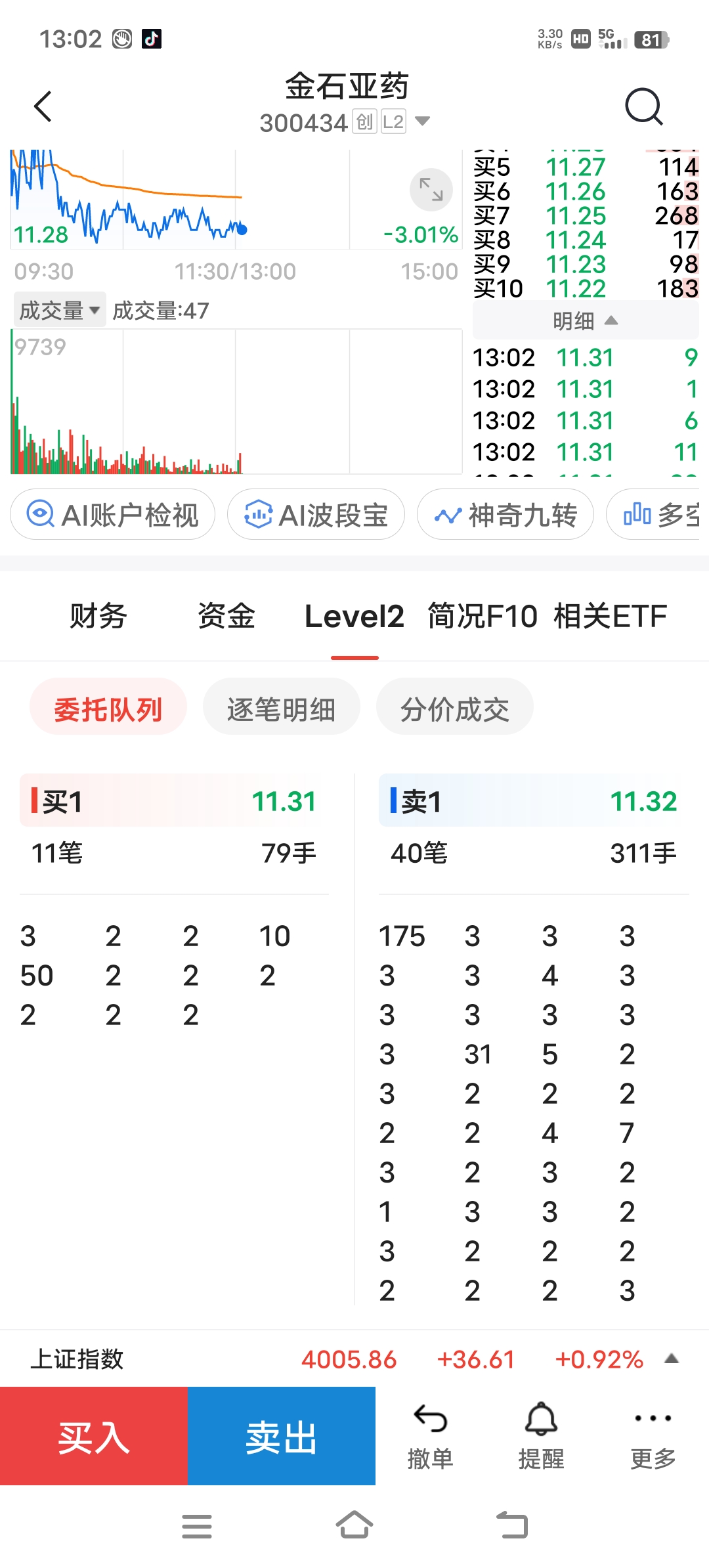 金石亚药我昨天卖了三分之二现在只有一成仓位在里面,明天准备择机全部买进去。今天只看你如何表演杀跌,绝不操作了!全是量化交易挂单,请看下图: