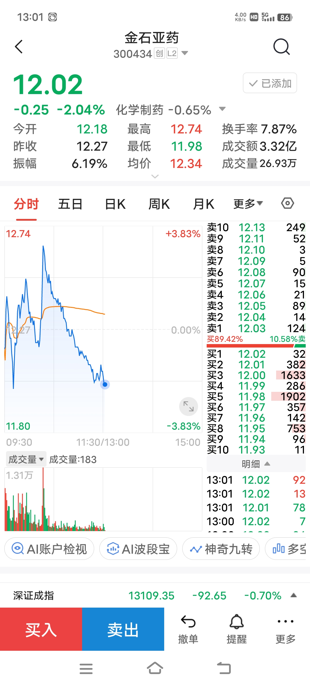 金石亚药11.98元大单能吸到:拭目以待吧!