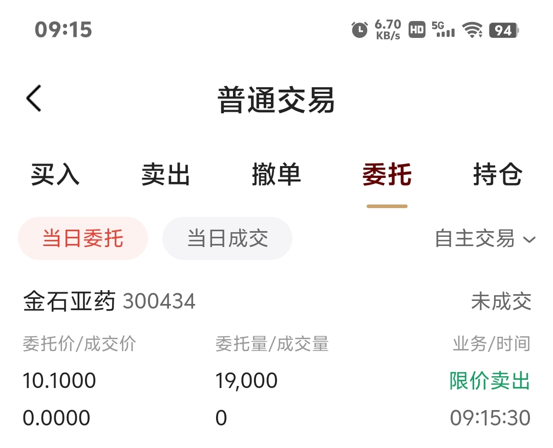 19000股金石亚药大清早挂的跌停价卖出未成交……