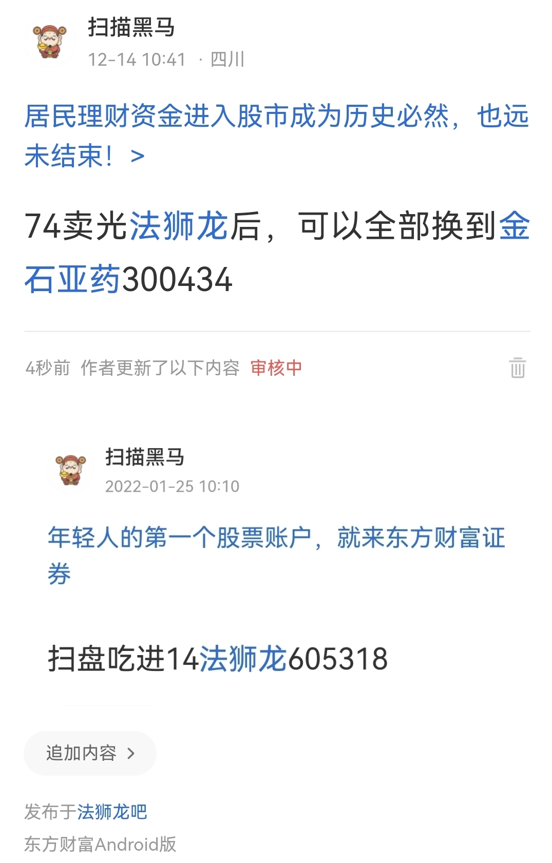 郑重声明:用户在财富号/股吧/博客等社区发表的所有信息(包括但不限于文字、视频、音频、数据及图表)仅代表个人观点,与本网站立场无关,不对您构成任何投资建议,据此操作风险自担。请勿相信代客理财、免费荐股和炒股培训等宣传内容,远离非法证券活动。请勿添加发言用户的手机号码、公众号、微博、微信及QQ等信息,谨防上当受骗!