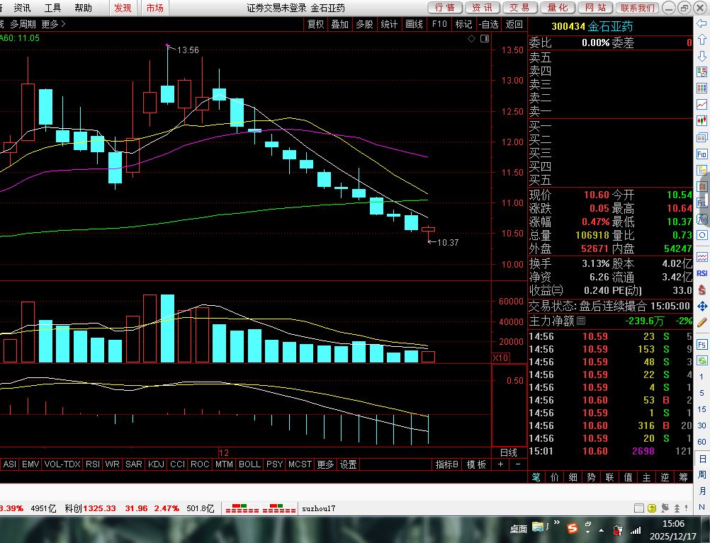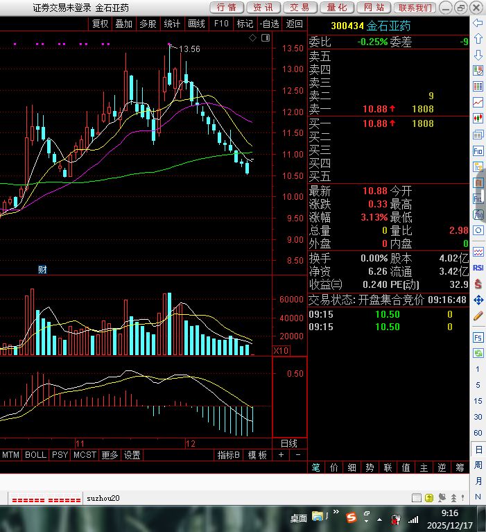 创业板指数大涨3.39%的情况下,金石亚药都还没站上5日均线: