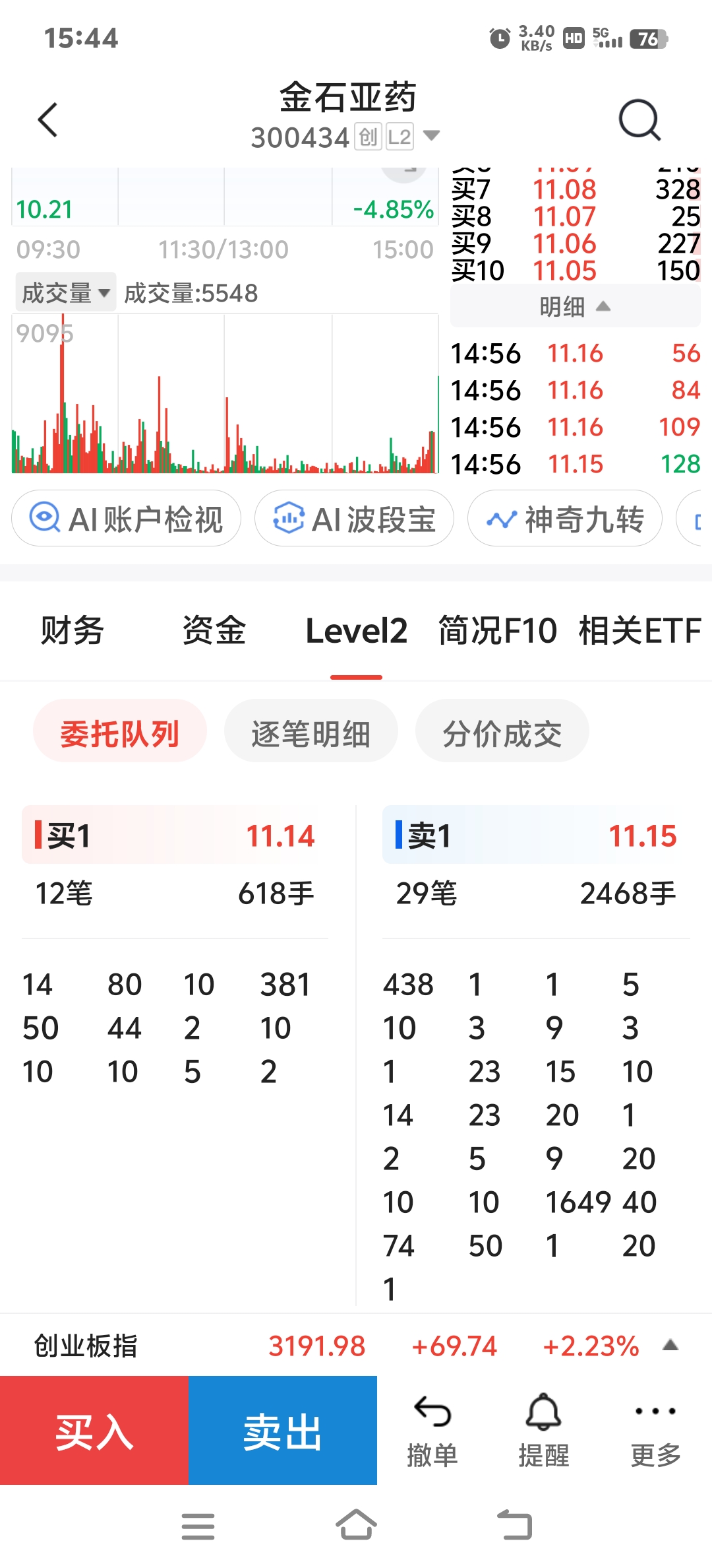 从量化交易挂单卖出金石亚药的手法来看:压着不让涨。具体原因我也没分析出来!