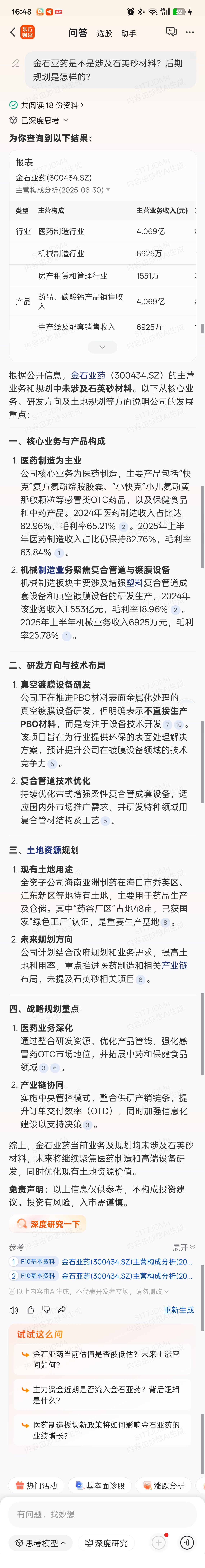 为啥东方财富的ai跟豆包的不同?金石亚药到底涉不涉及高纯石英砂?哪位大神能帮证实