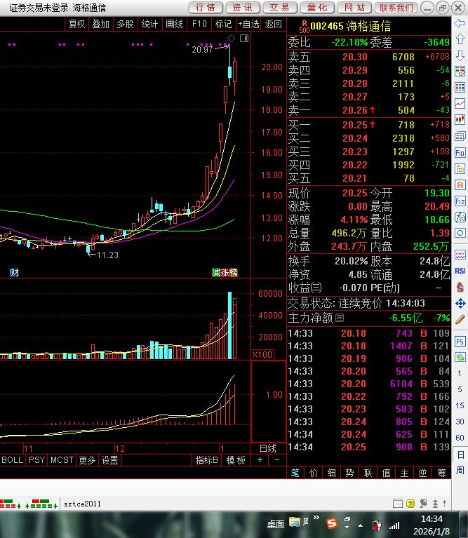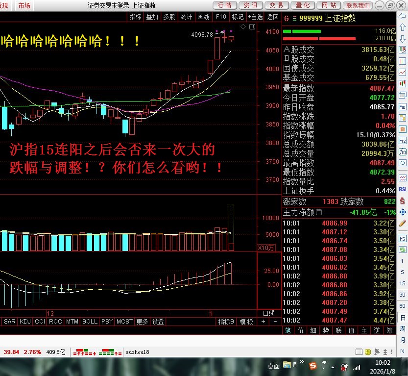 大盘15连阳之后必须来一次巨震:黑周五也许会很黑!明天管住手不要在大跌的时候加仓被套住了……当下空仓是最明智的操作方法。要么就去买海格通信那种强势股!!