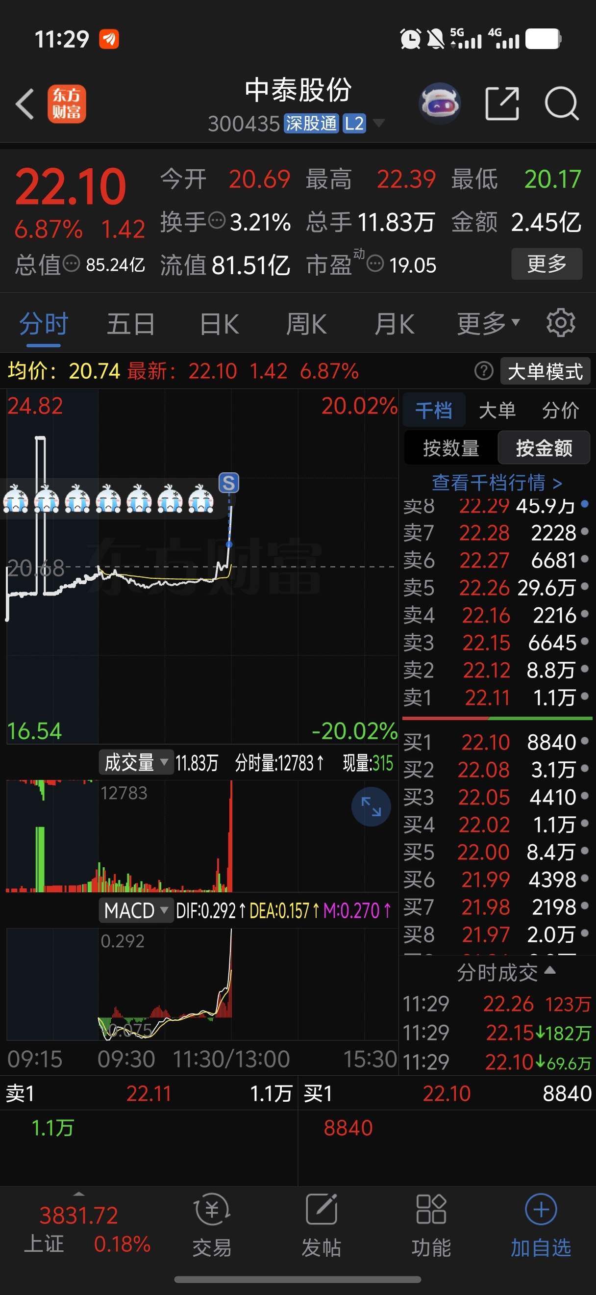 $中泰股份(SZ300435)$ 知道什么涨了吧