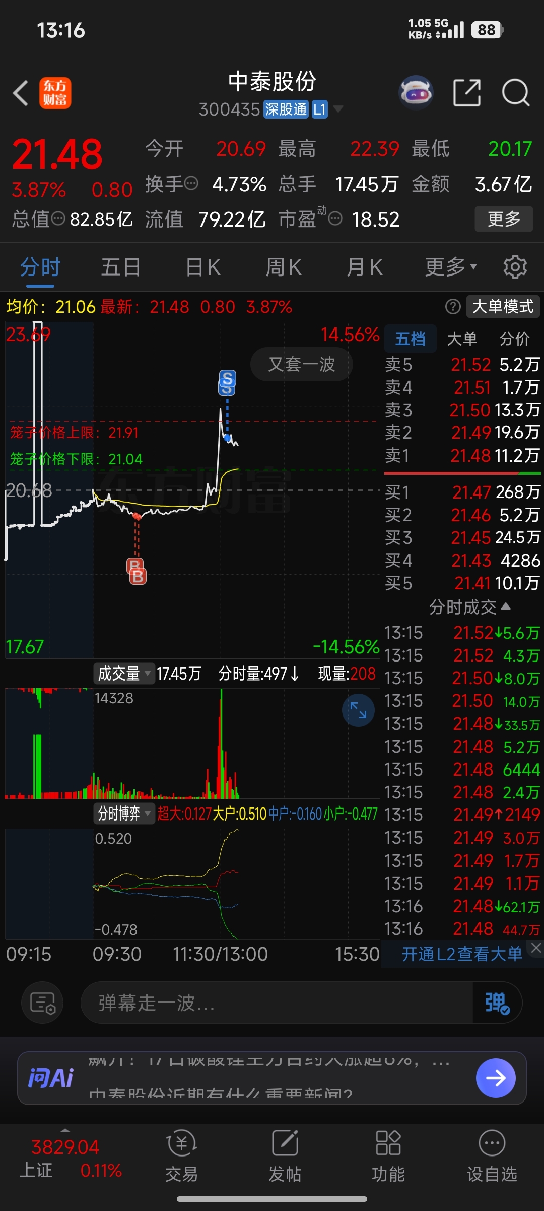 $中泰股份(SZ300435)$ 感谢主力T了1.50