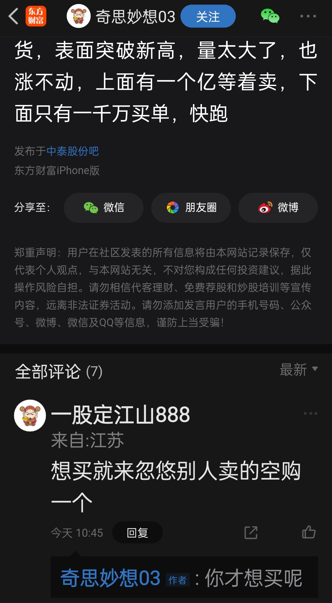 温馨提示: 1.根据《证券法》规定,禁止编造、传播虚假信息或者误导性信息,扰乱证券市场;2.用户在本社区发表的所有资料、言论等仅代表个人观点,与本网站立场无关,不对您构成任何投资建议。用户应基于自己的独立判断,自行决定证券投资并承担相应风险。《东方财富社区管理规定》
