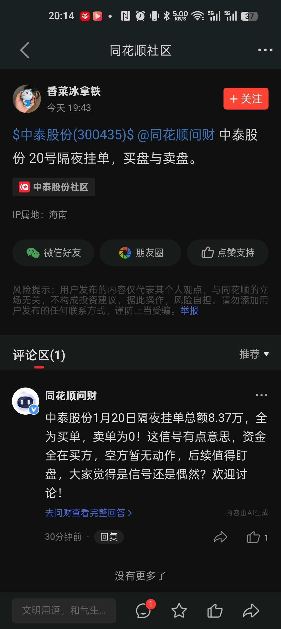 温馨提示: 1.根据《证券法》规定,禁止编造、传播虚假信息或者误导性信息,扰乱证券市场;2.用户在本社区发表的所有资料、言论等仅代表个人观点,与本网站立场无关,不对您构成任何投资建议。用户应基于自己的独立判断,自行决定证券投资并承担相应风险。《东方财富社区管理规定》