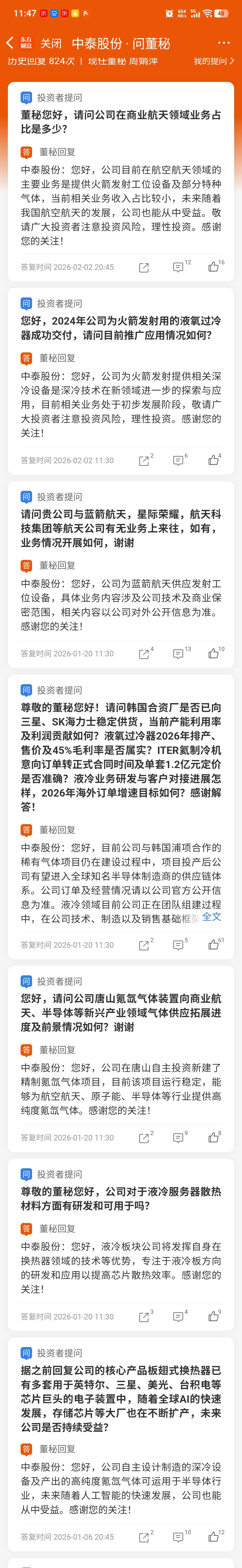 中泰是最正宗的商业航天、液冷原料供应商!严重低估!