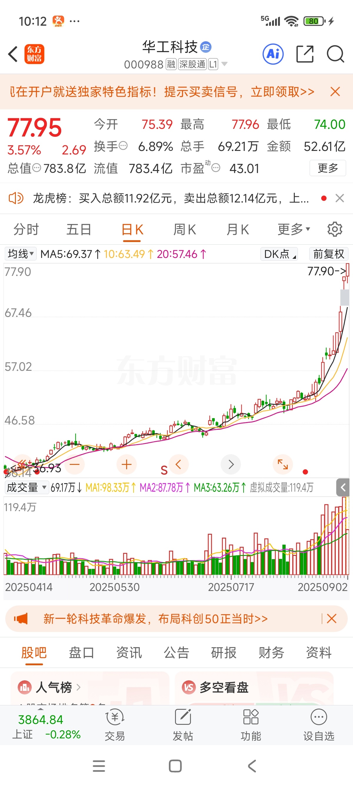 上纬新材(8↗102)只是一只月,且有9次异动。广生堂则只有2次异动。至于有几多次异动,我不清楚。做T又会亏。出外买又死。不如守死广生堂。是药茅不会错。一千或3千也不知道。只知道明天会更好!