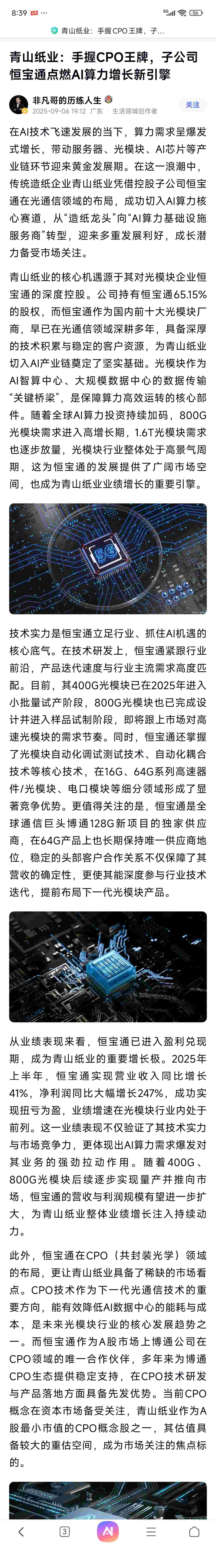剑桥科技入选理由:2025年半年报显示,目前公司已完成基于100G/L和200G/L的CPO集成硅光引擎和基于大功率激光器的CPO集成光源的预研和样机研发;公司正在加速切换和新增800G与1.6T高速光模块生产线以及3.2T与CPO技术的试制线工作;同时,基于集成硅光引擎和大功率激光技术的CPO器件已启动研发和送样准备工作,为后续技术落地奠定基础。