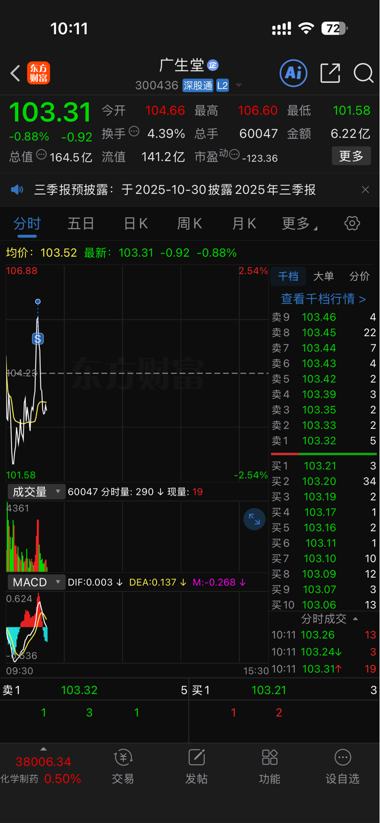 $广生堂(SZ300436)$ 今日高点已现
