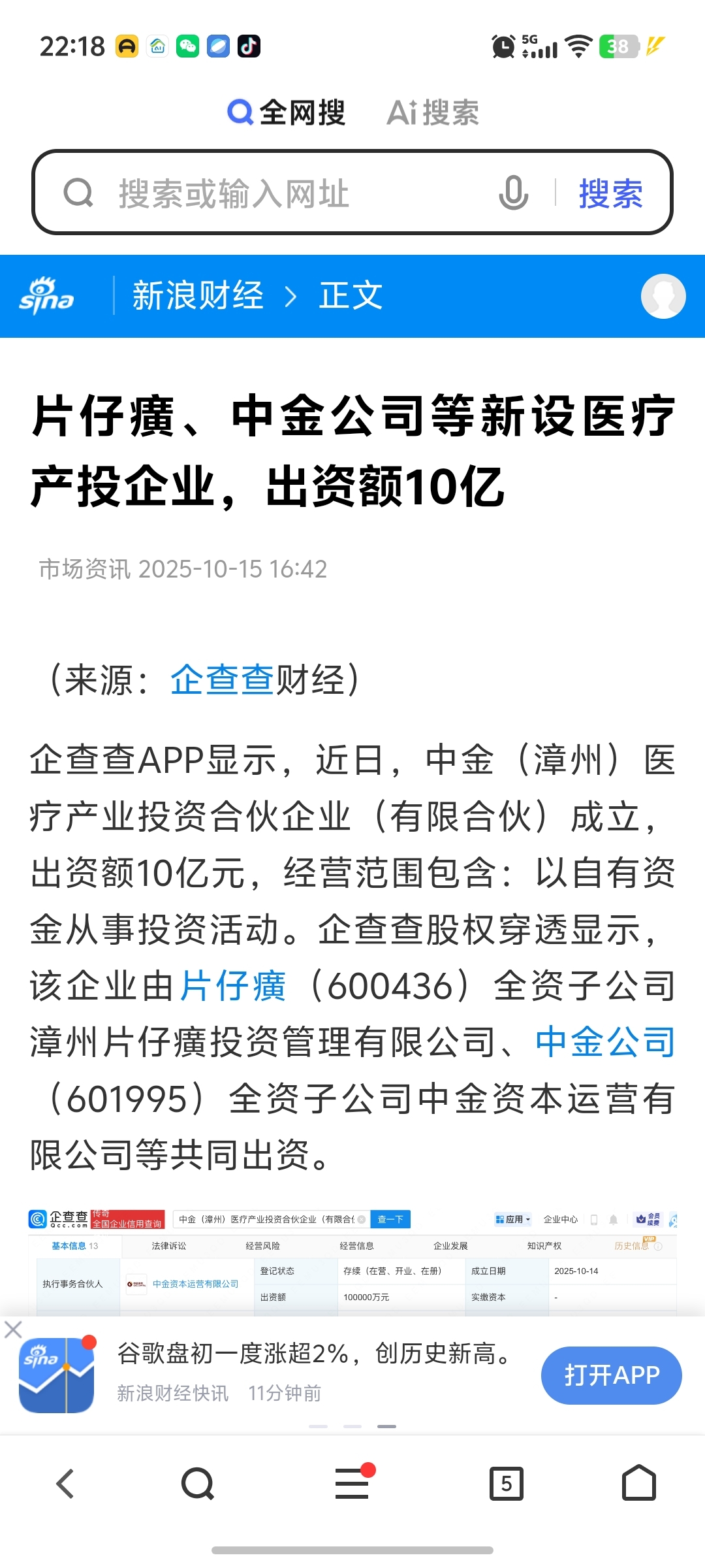 $广生堂(SZ300436)$ 片仔癀和中金公司刚成立的投资公司出资额10亿,正好和广生堂募集资金10亿对上