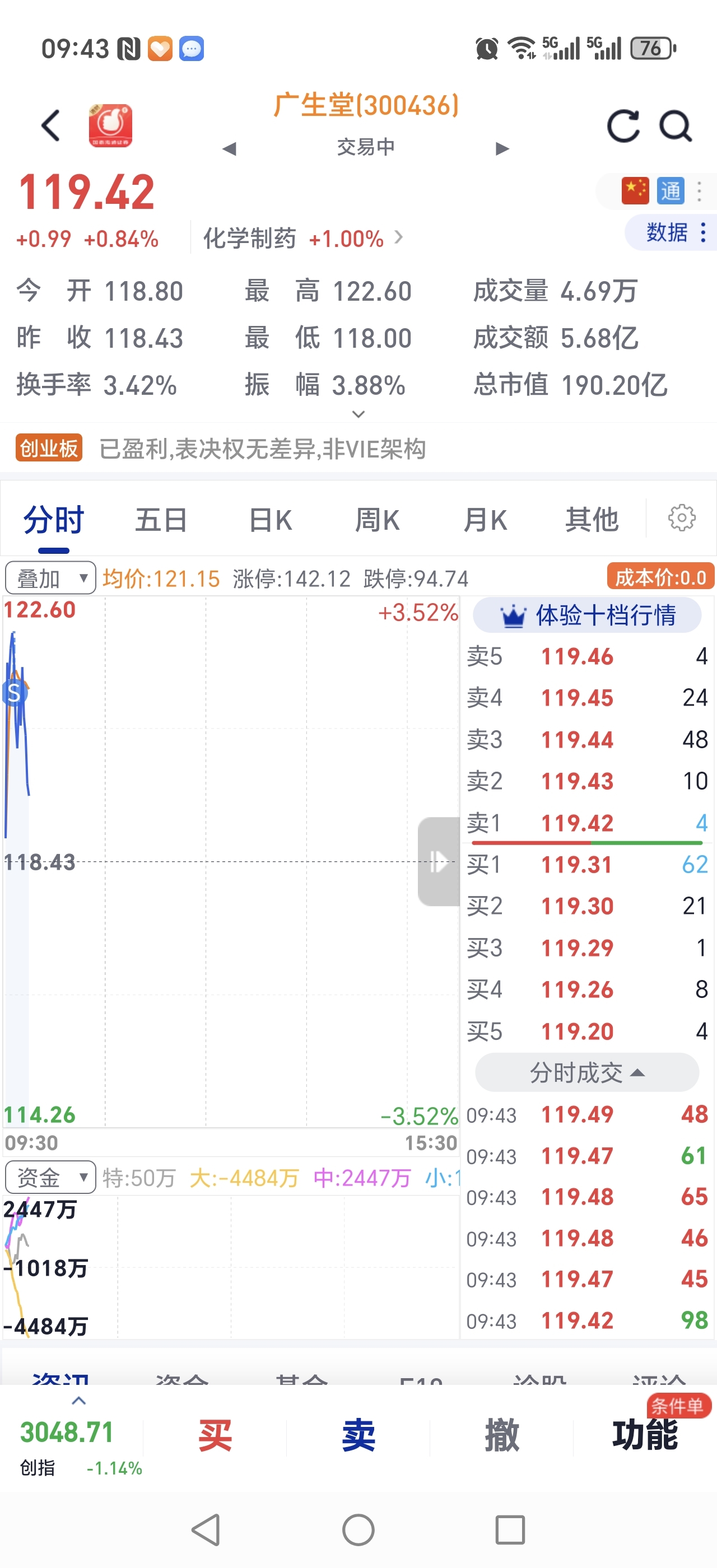 $广生堂(SZ300436)$ 122.07,应该3个点出的