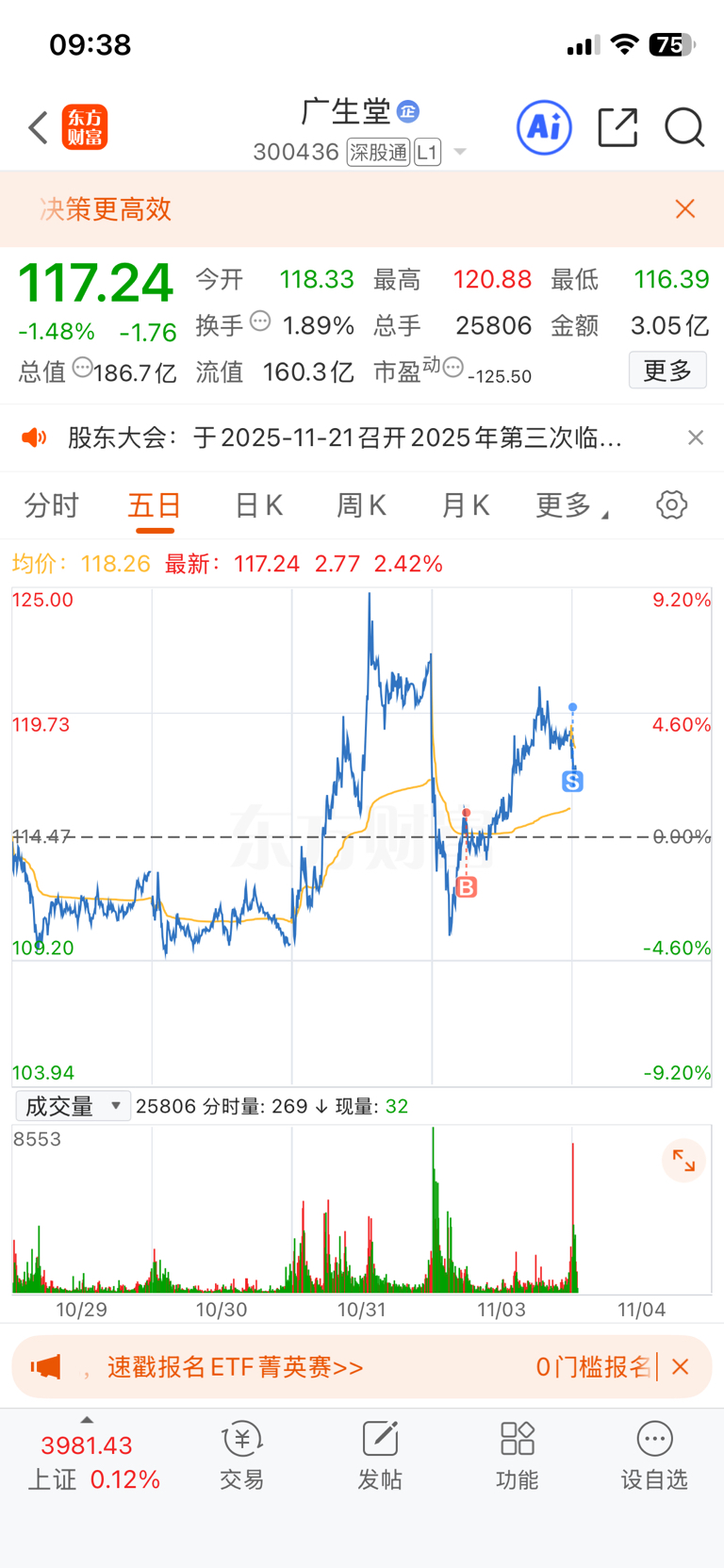 $广生堂(SZ300436)$ 快进快出,4个点知足了