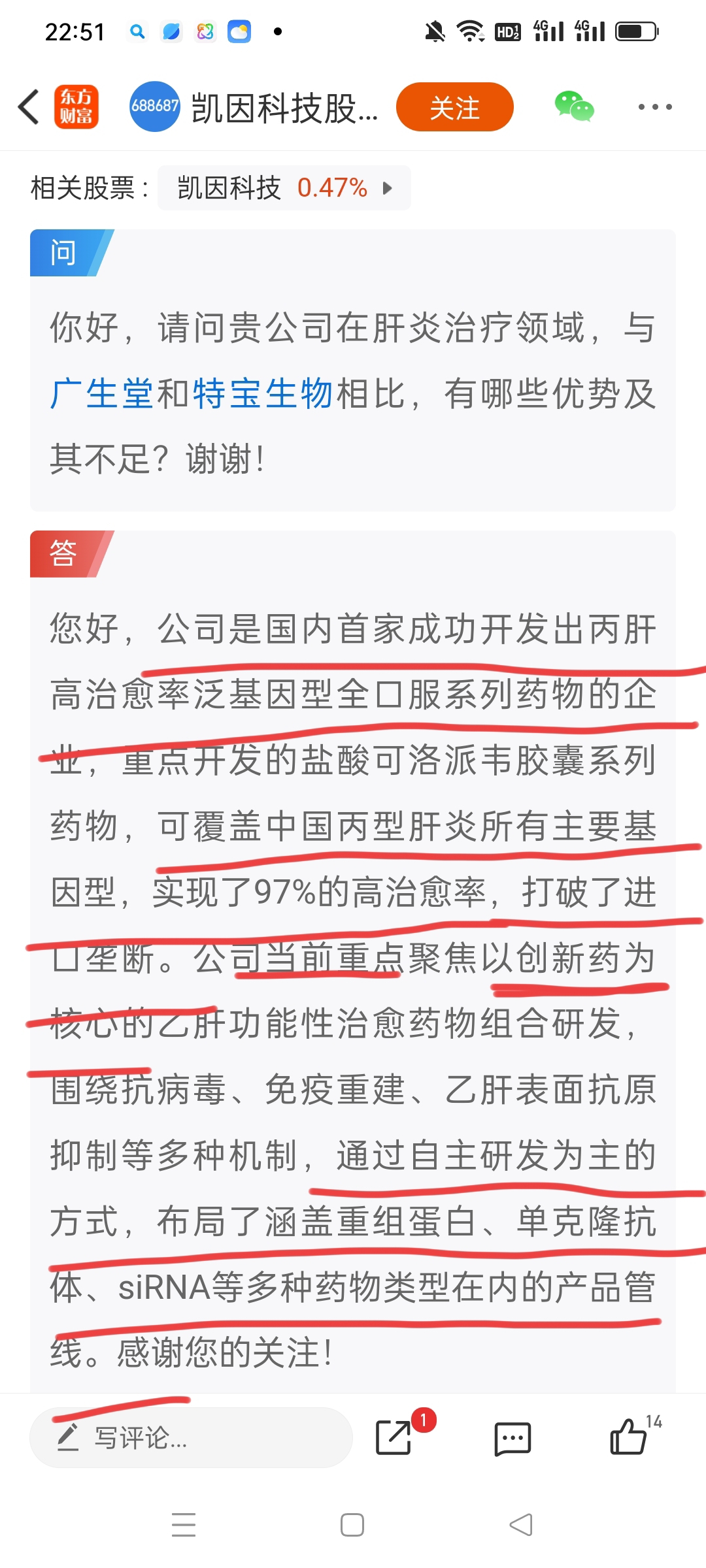 肝炎创新药第一股是688687凯因科技,产品打破国外垄断,市场前景广阔,抗病毒在