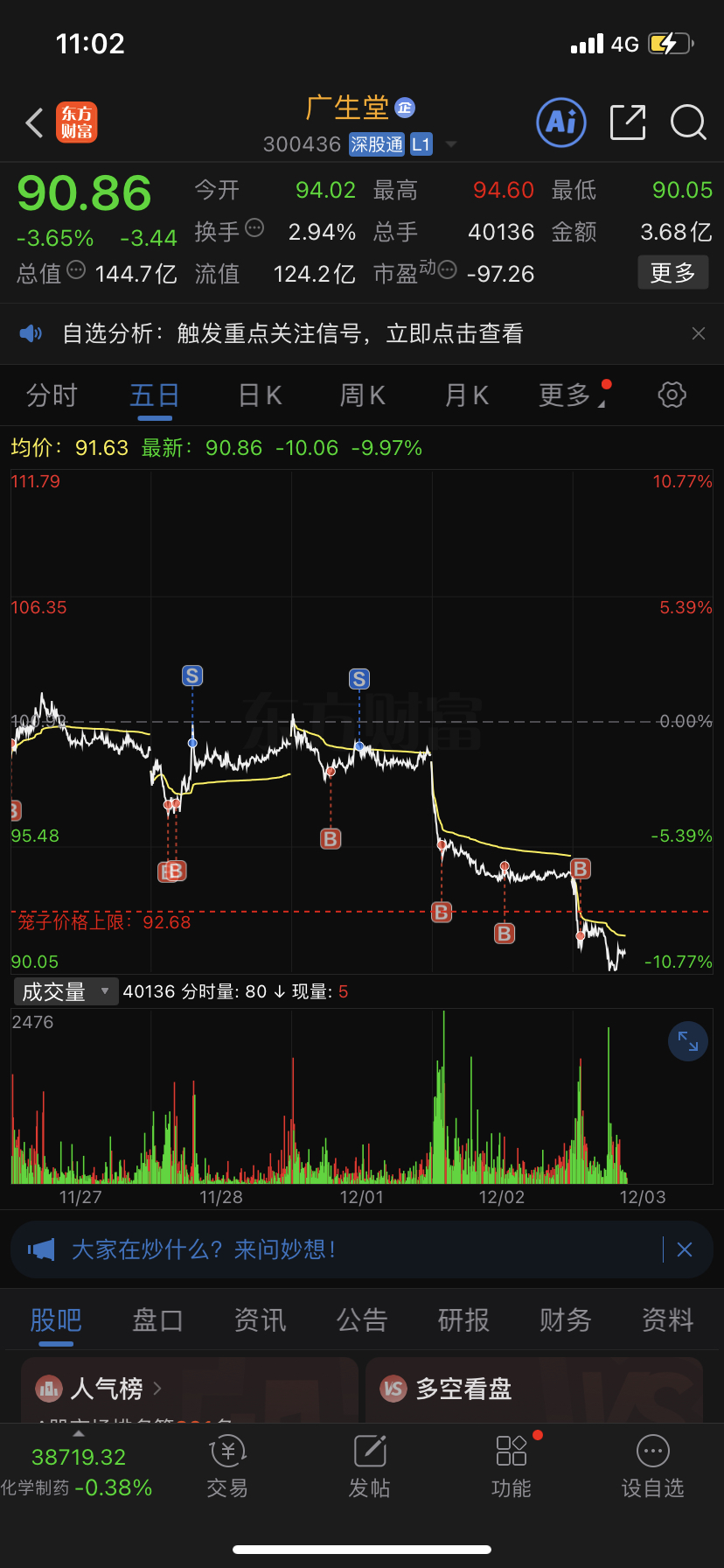 $广生堂(SZ300436)$ 敢跌我就继续买,快跌多点